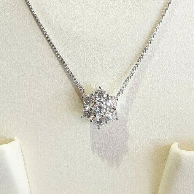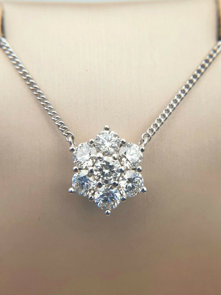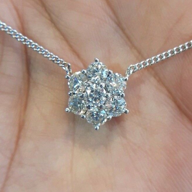 18Carat White Gold Diamond Daisy Cluster Necklace 2.00 GSI1 Certified 18" Chain