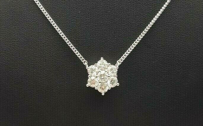 18Carat White Gold Diamond Flower Necklace with 1.00 carat VS/G-H 16'' inch