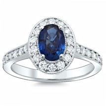 18Carat White Gold Natural Oval Blue Sapphire Diamond Cluster Ring 0.60 Carats