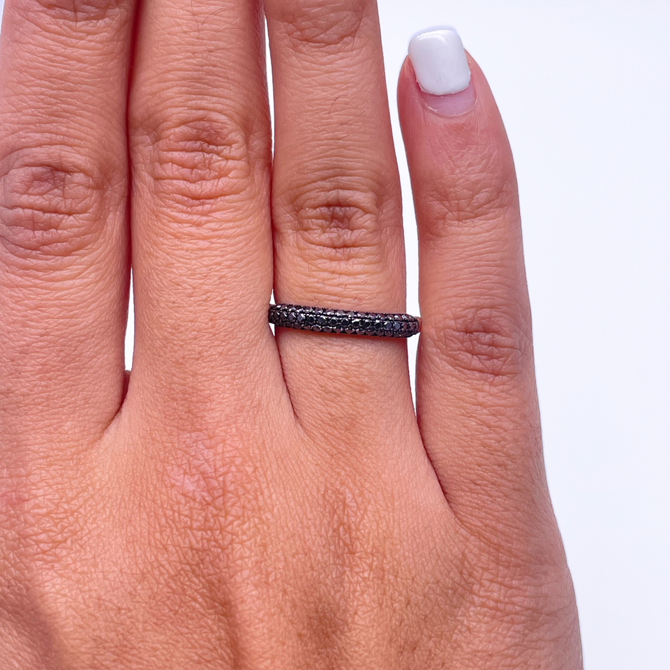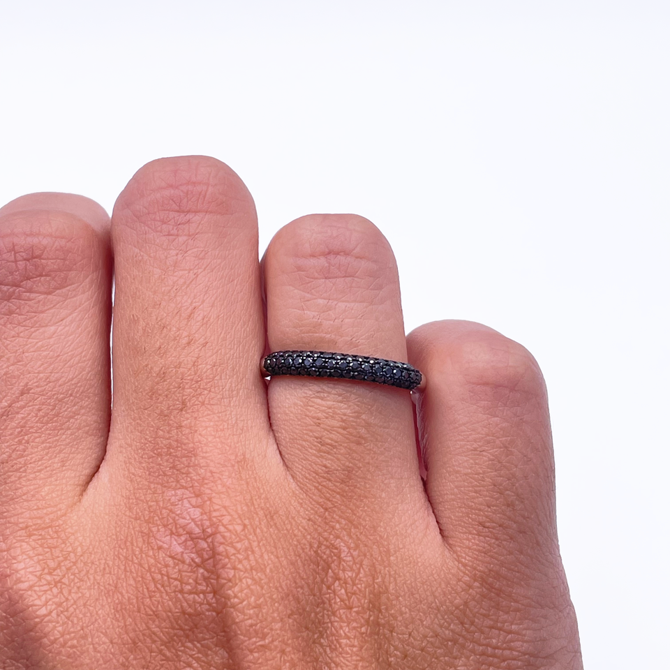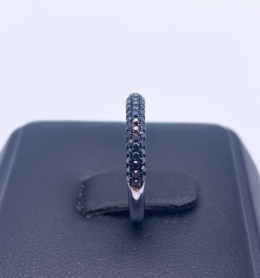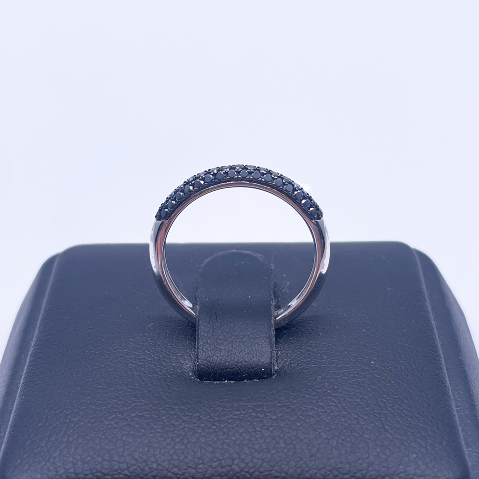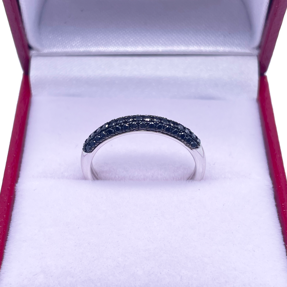 14ct White Gold Black Diamond 3 Row Dome Shaped Pave Set Ring 0.37ct