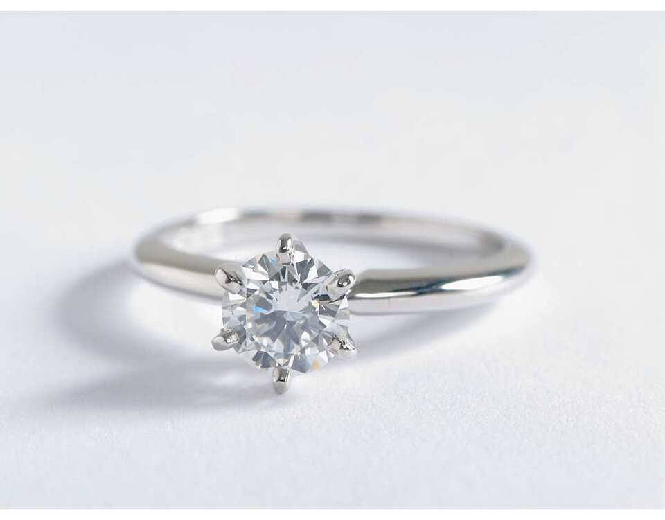 A Classic Elegant Half Carat Solitaire Diamond Ring Set in Tiffany Style 6-Claw Setting,