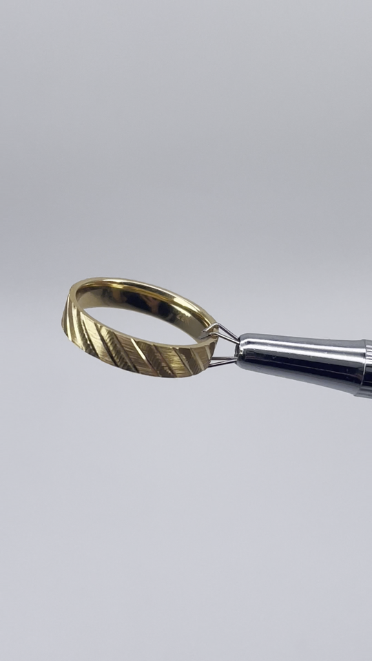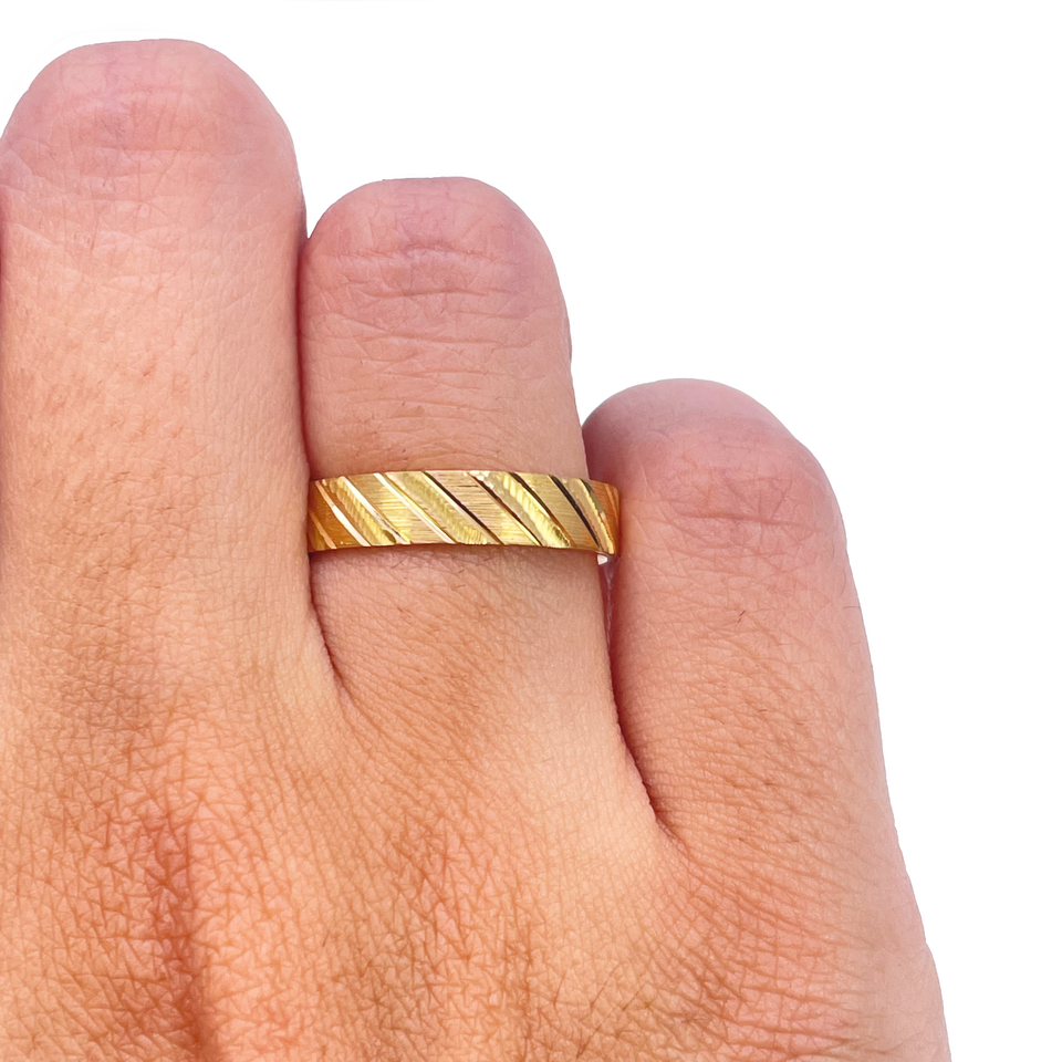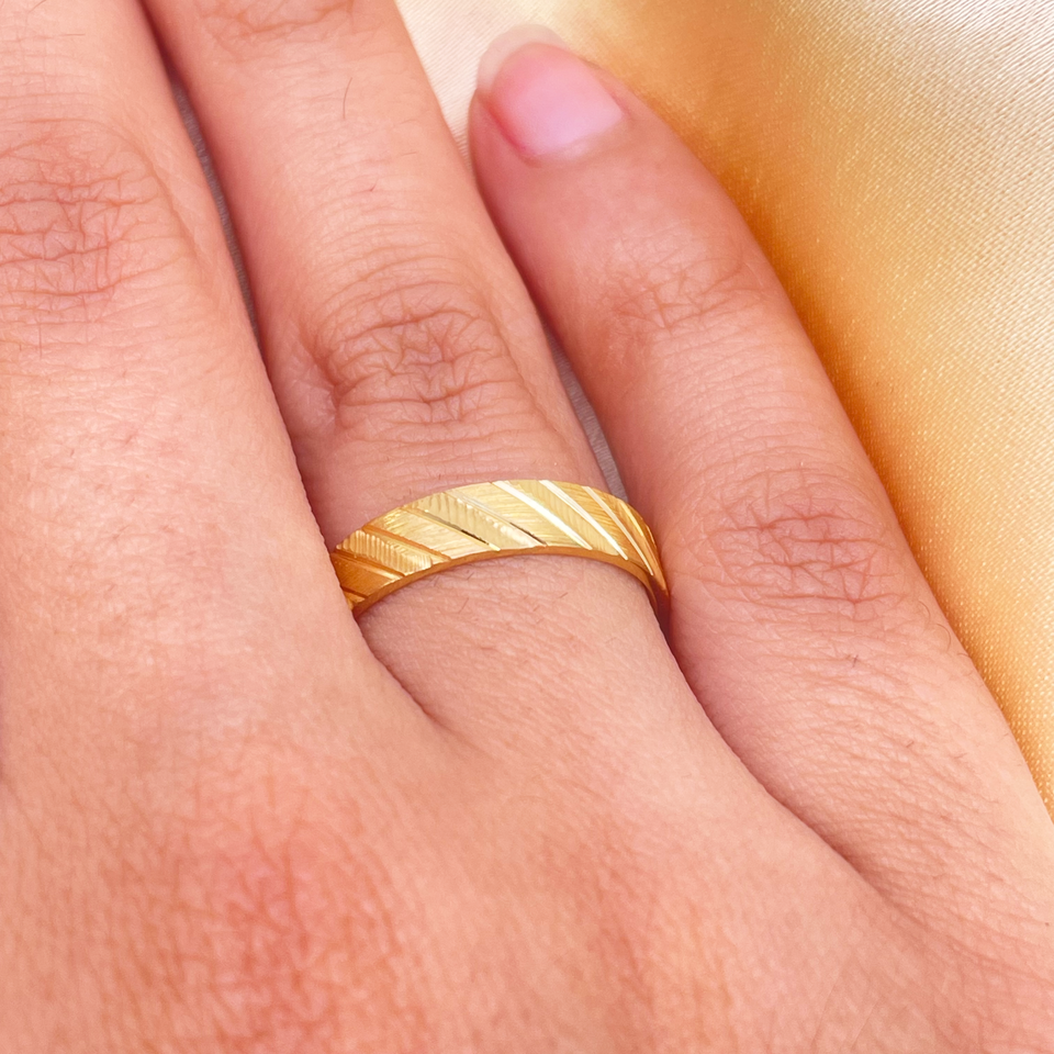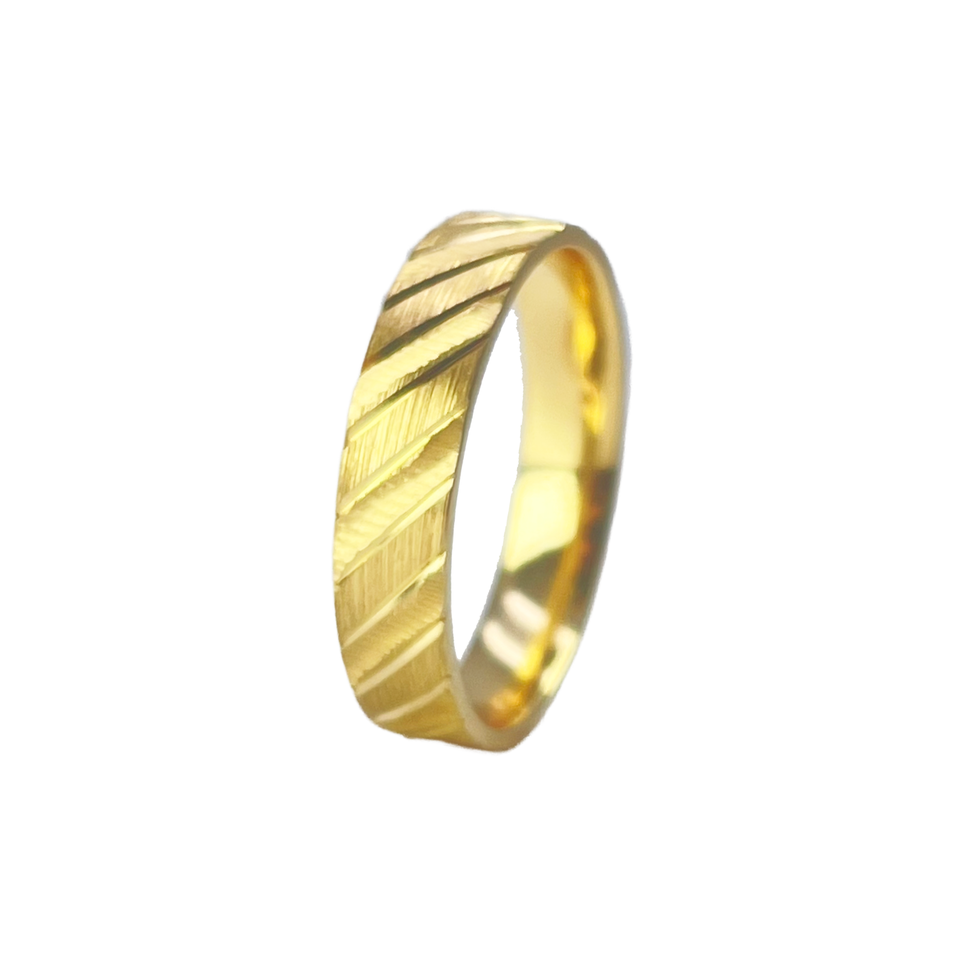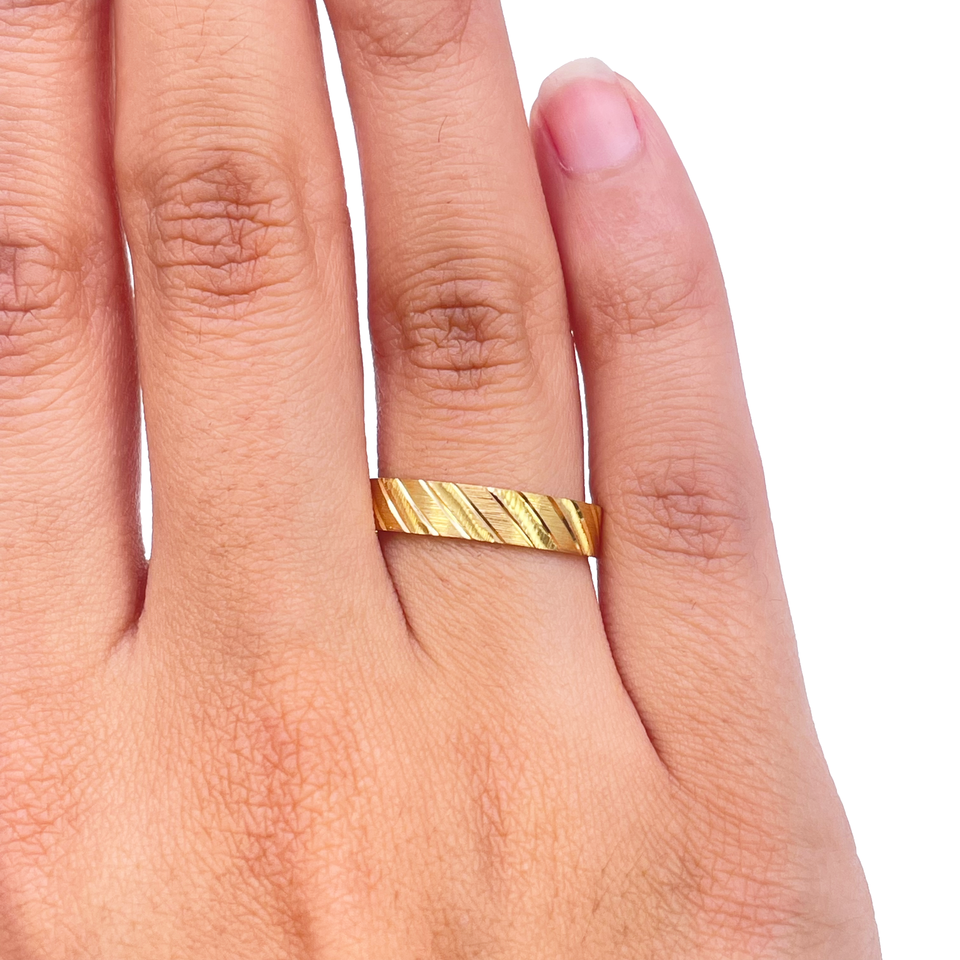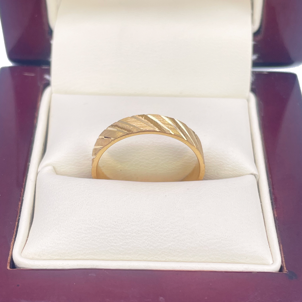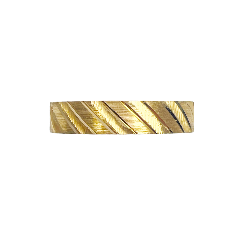22ct Yellow Gold Fancy Diamond Cut, Polished Textured Stripes Women's Band 4mm