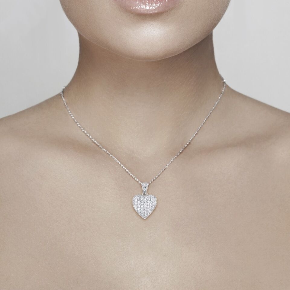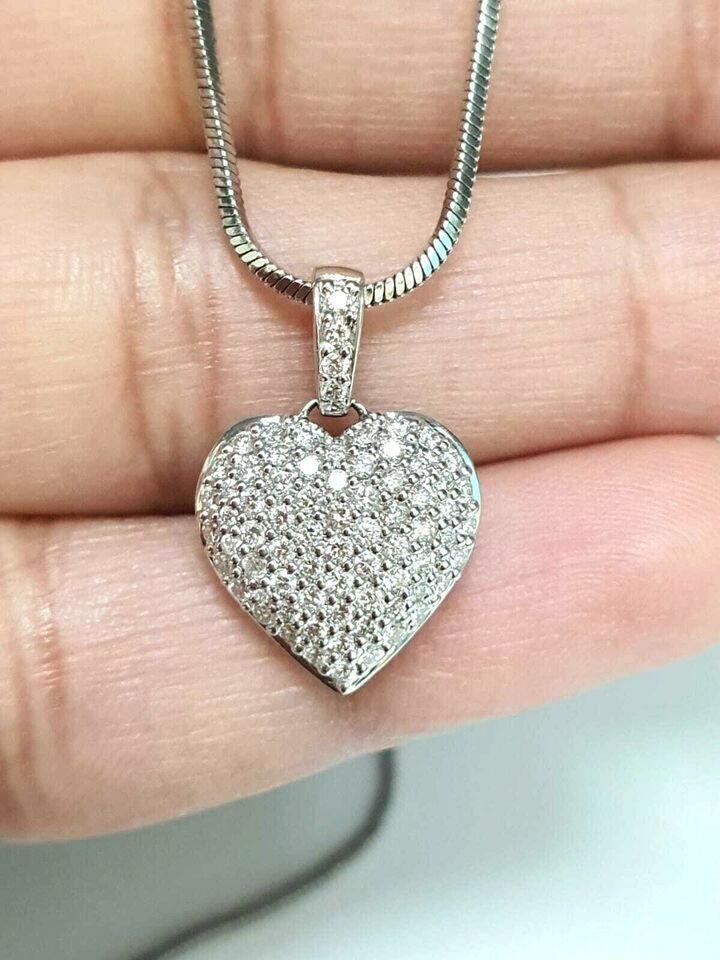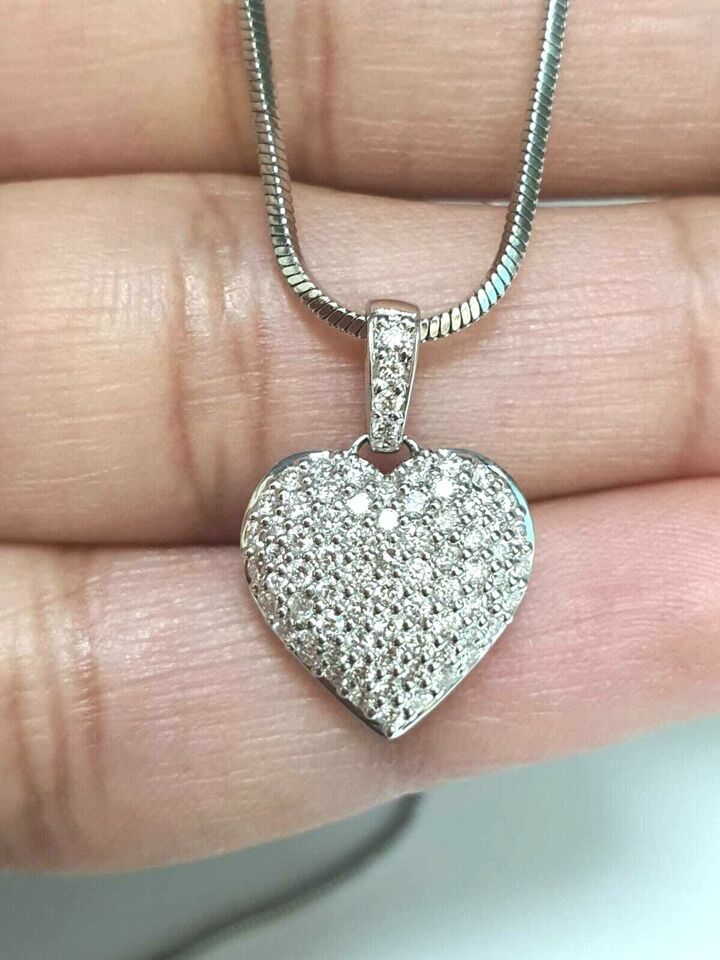 18Carat White Gold & Diamond Pave Set Puffed Heart Pendant 0.50cts 16" Chain