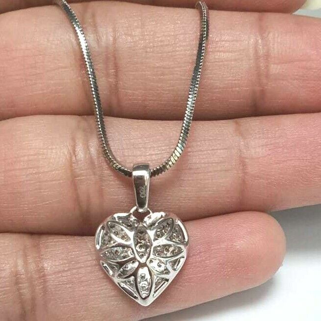 Absolutely Gorgeous Diamond Puffed Heart Pendant on 16"Chain Necklace