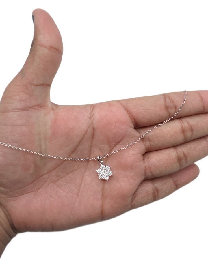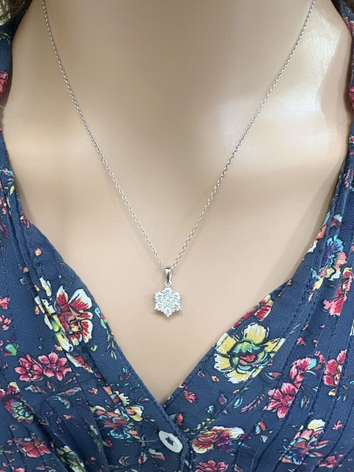18Carat White Gold Diamond Daisy Cluster Pendant 0.50cts on 16"Chain Necklace