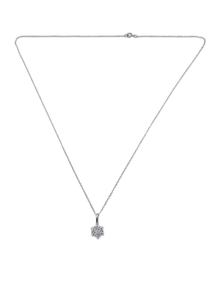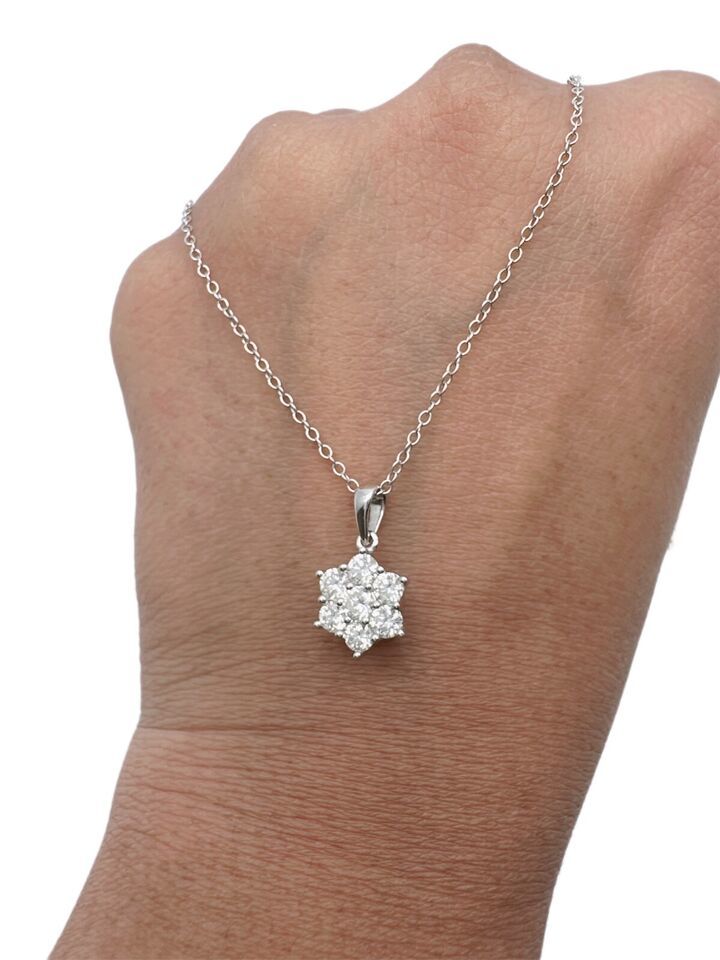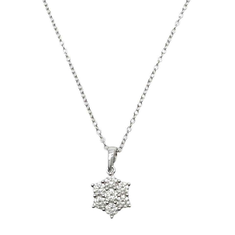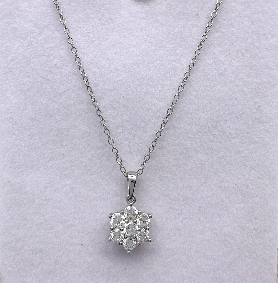 14ct White Gold Diamond Daisy Cluster Pendant 0.74cts on 18 inch Chain Necklace