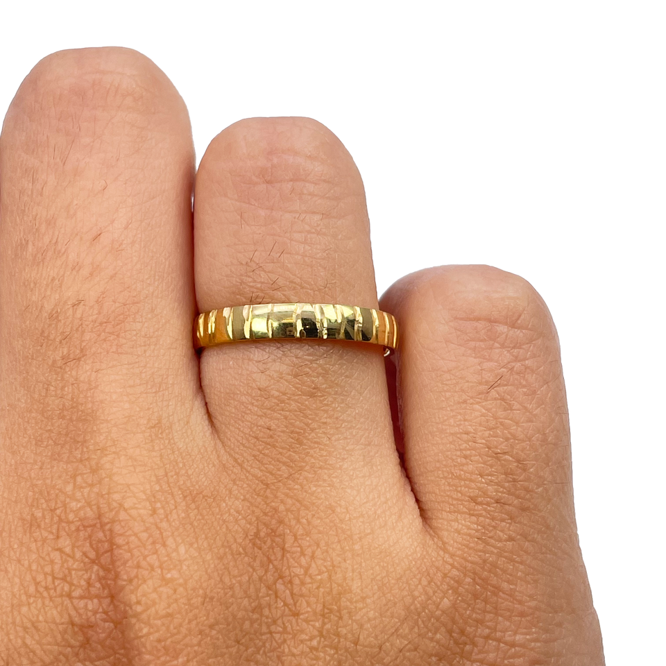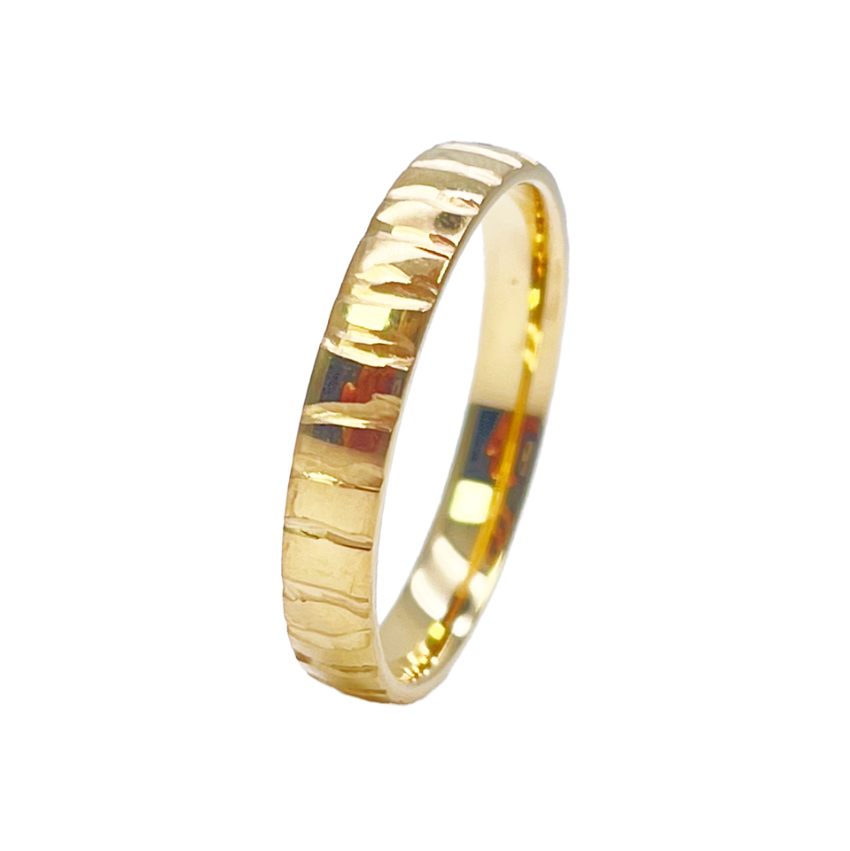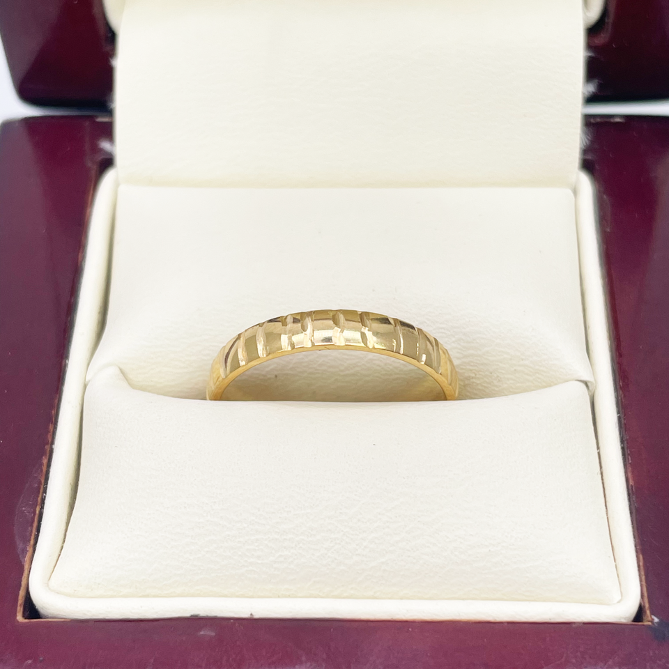 22ct Yellow Gold High Polished Diamond Cut Stripes Women's Band 3mm