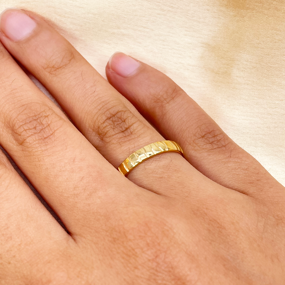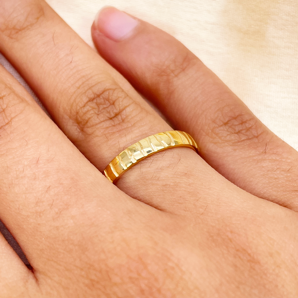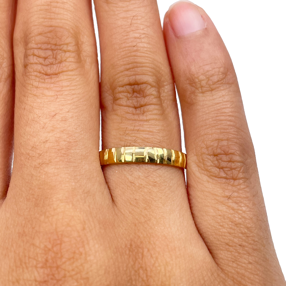 22ct Yellow Gold High Polished & Diamond Cut Stripes Women's Band 3mm