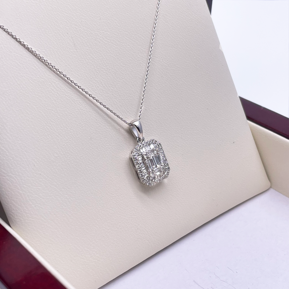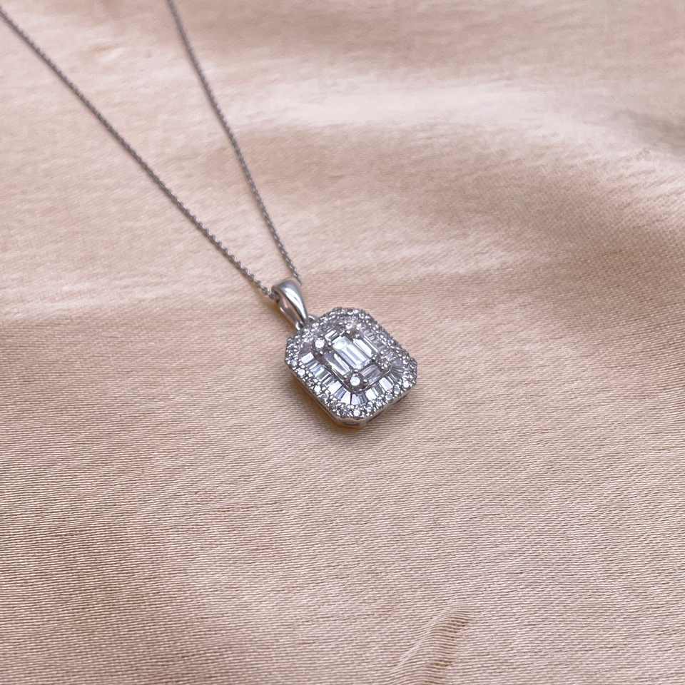 9ct White Gold & Natural Round & Baguette Diamonds Pendant Necklace 0.53cts