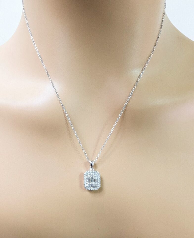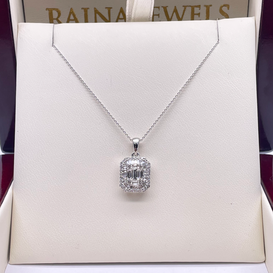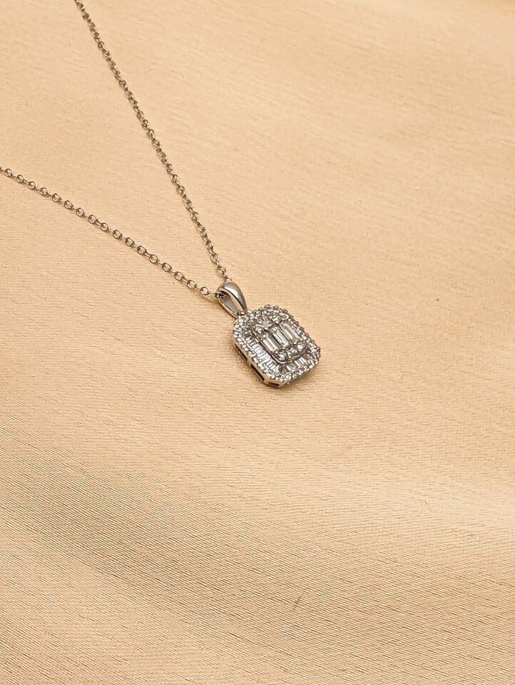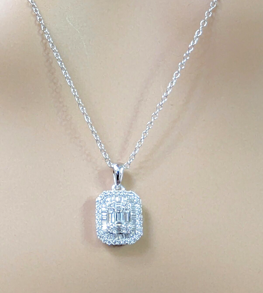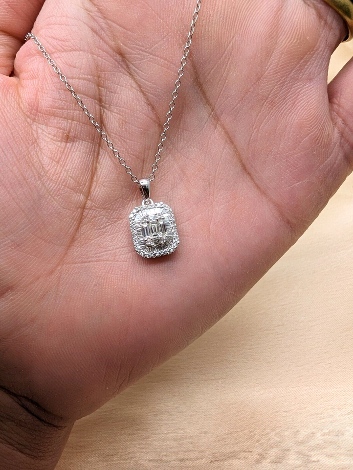 A Dainty Elegant Natural Round Baguette Diamonds Rectangle Pendant Necklace