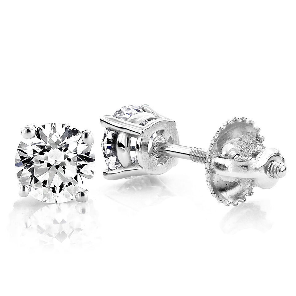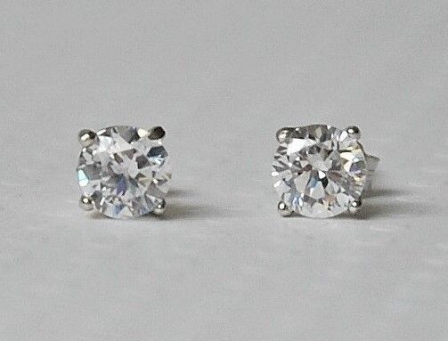 18Carat White Gold Diamond Solitaire Ear Studs 4-Claw 1.01 carats GSI