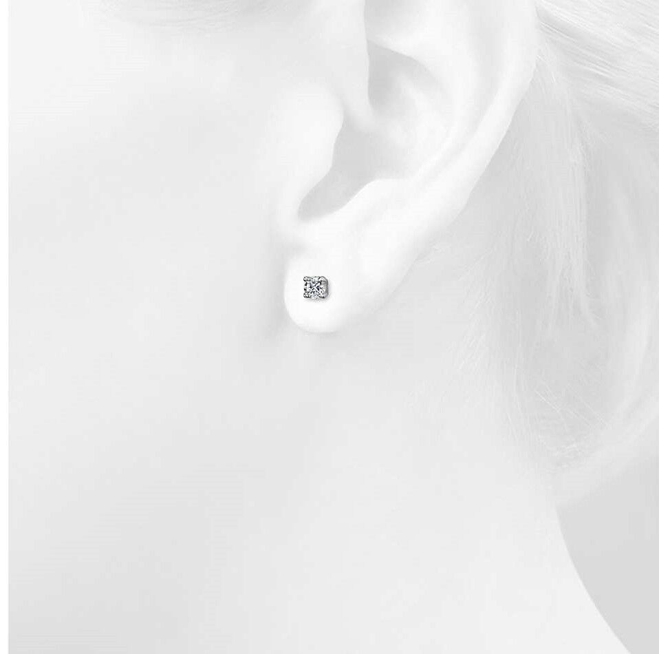 An Elegant Pair Solitaire Diamond Ear Studs in 4-Claw Style Classic Setting, Handmade in 18K White Gold.