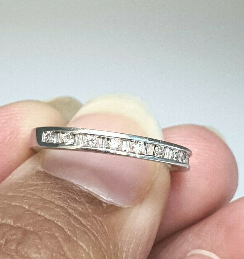 18Carat White Gold Diamond Round-Baguette Half Eternity 0.25carats 2.4MM Wide