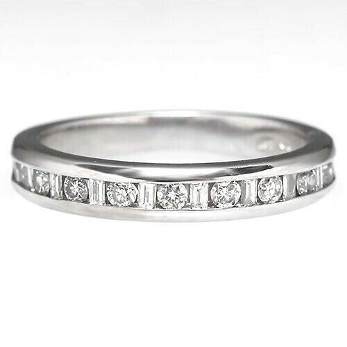 An Elegant Diamond Half Eternity Wedding Band, Round Baguette Diamonds set 2.4mm width