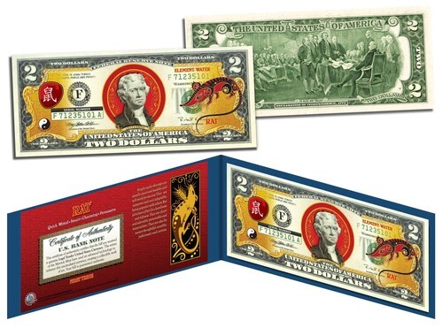 2020 Lunar Chinese New YEAR OF THE RAT Polychrome 8 Rats $2 Bill in 8x10 Folio