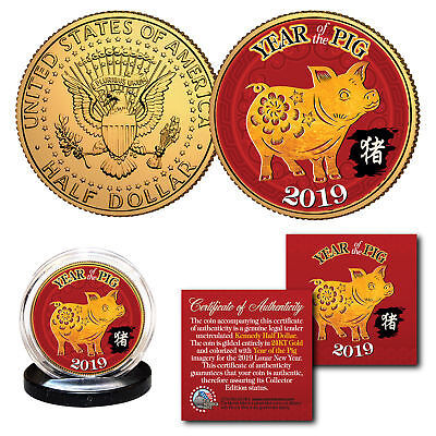 2019 Chinese New YEAR OF THE PIG 24K Gold Plated JFK Kennedy Half Dollar US Coin