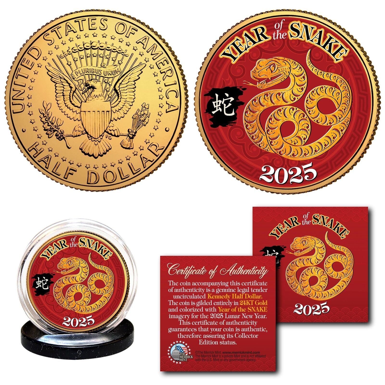 2025 Lunar New YEAR OF THE SNAKE 24K Gold Plated JFK Kennedy Half Dollar Coin