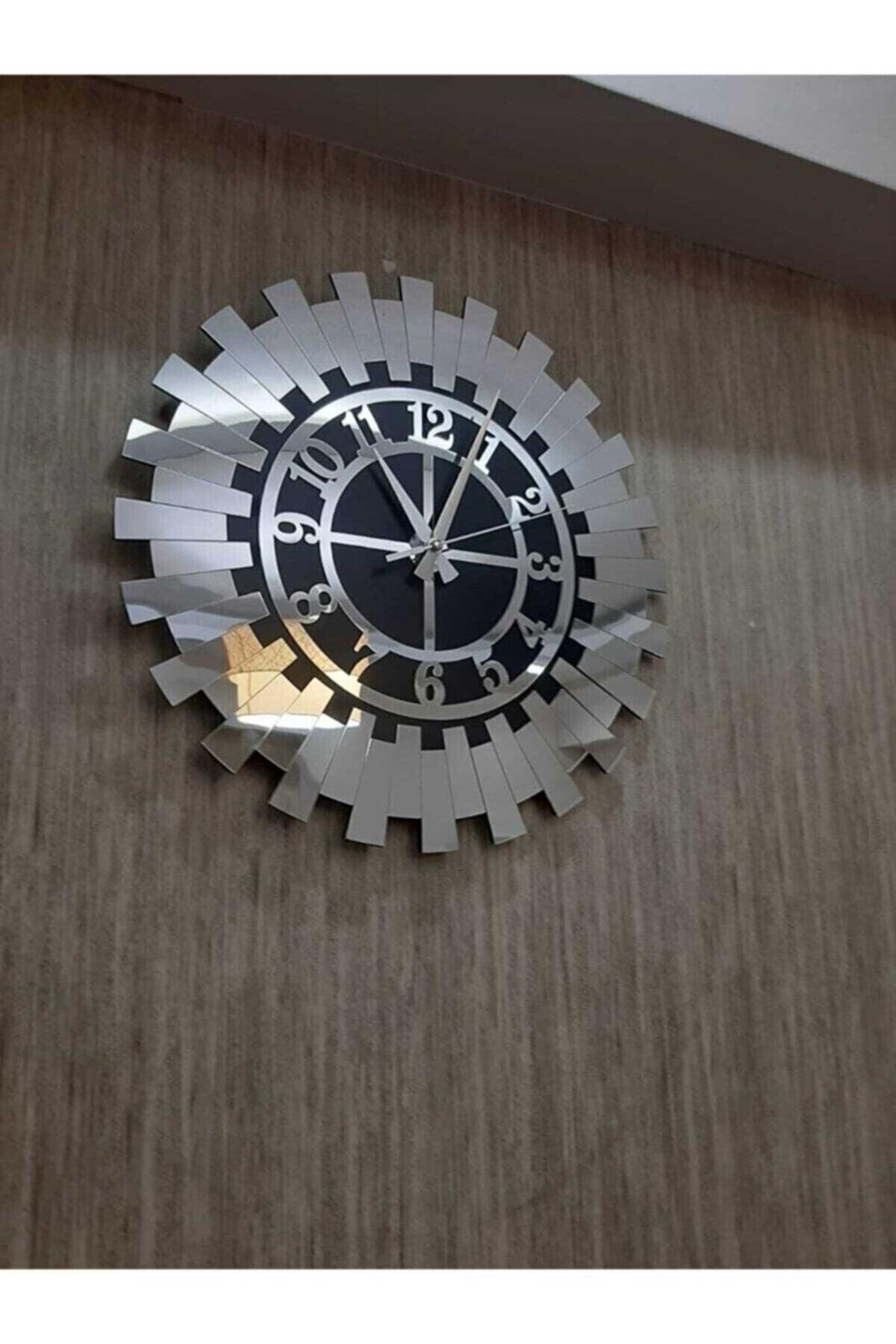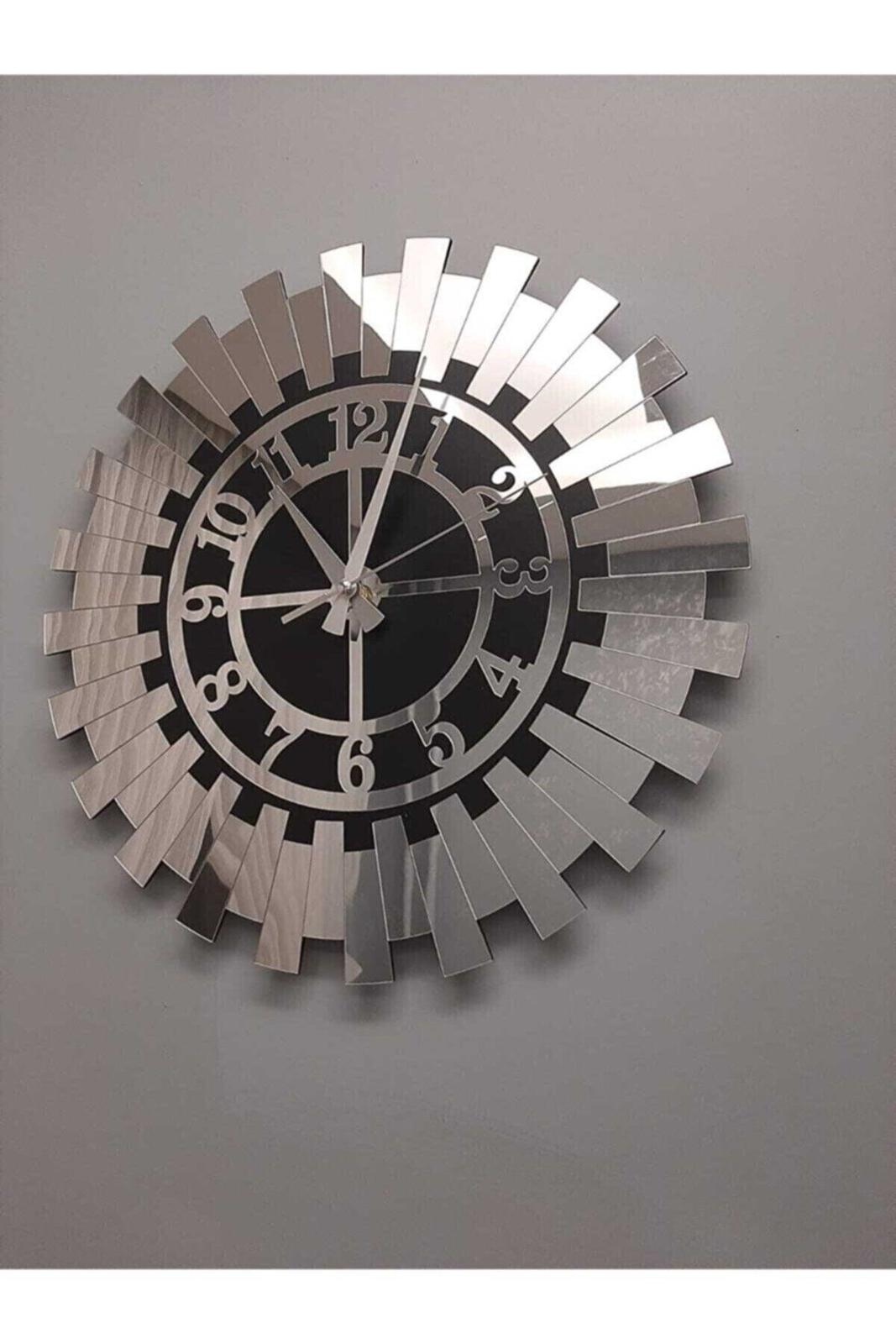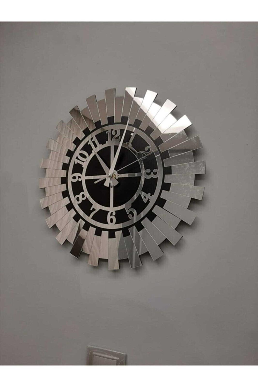 Modern Silver Sun Wall Clock Decorative Turkish Numeral Mdf Mirrored Plexi 40x40