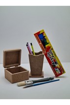 Wood Painting Kids Hobby Set (Painting Box And Pen Holder) - Acrylic Paint + Bru