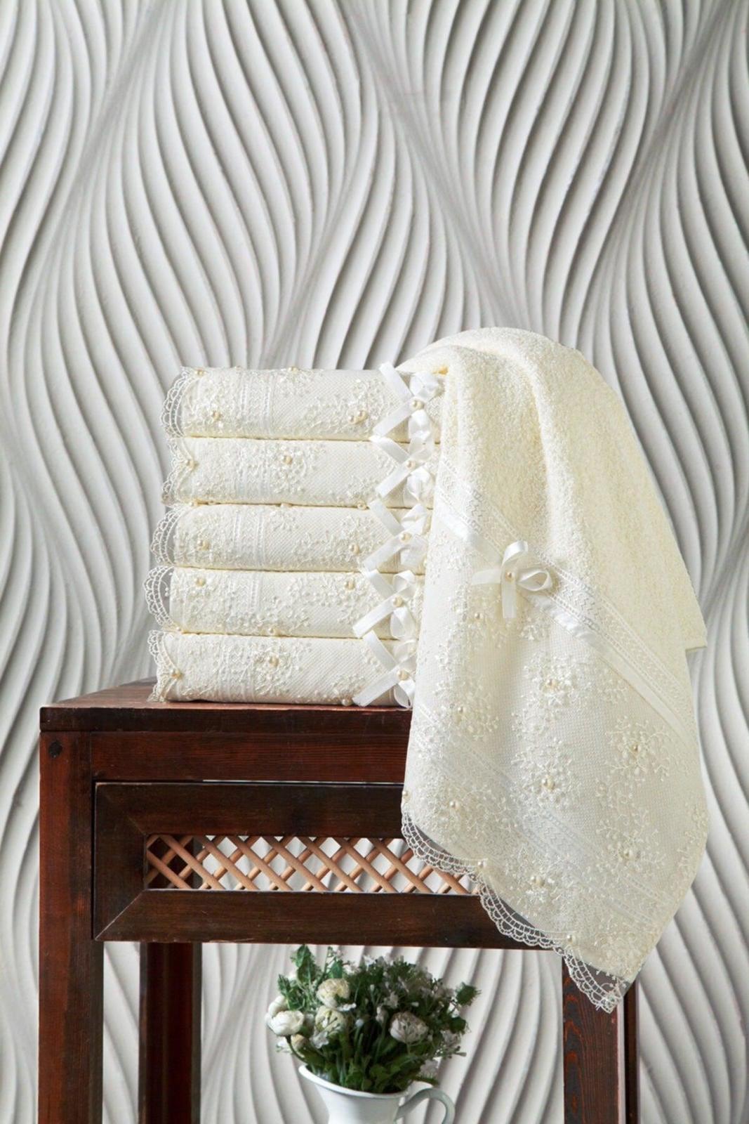 100% Cotton Beaded Guipure Dowry 3 Pcs Towel 50x85