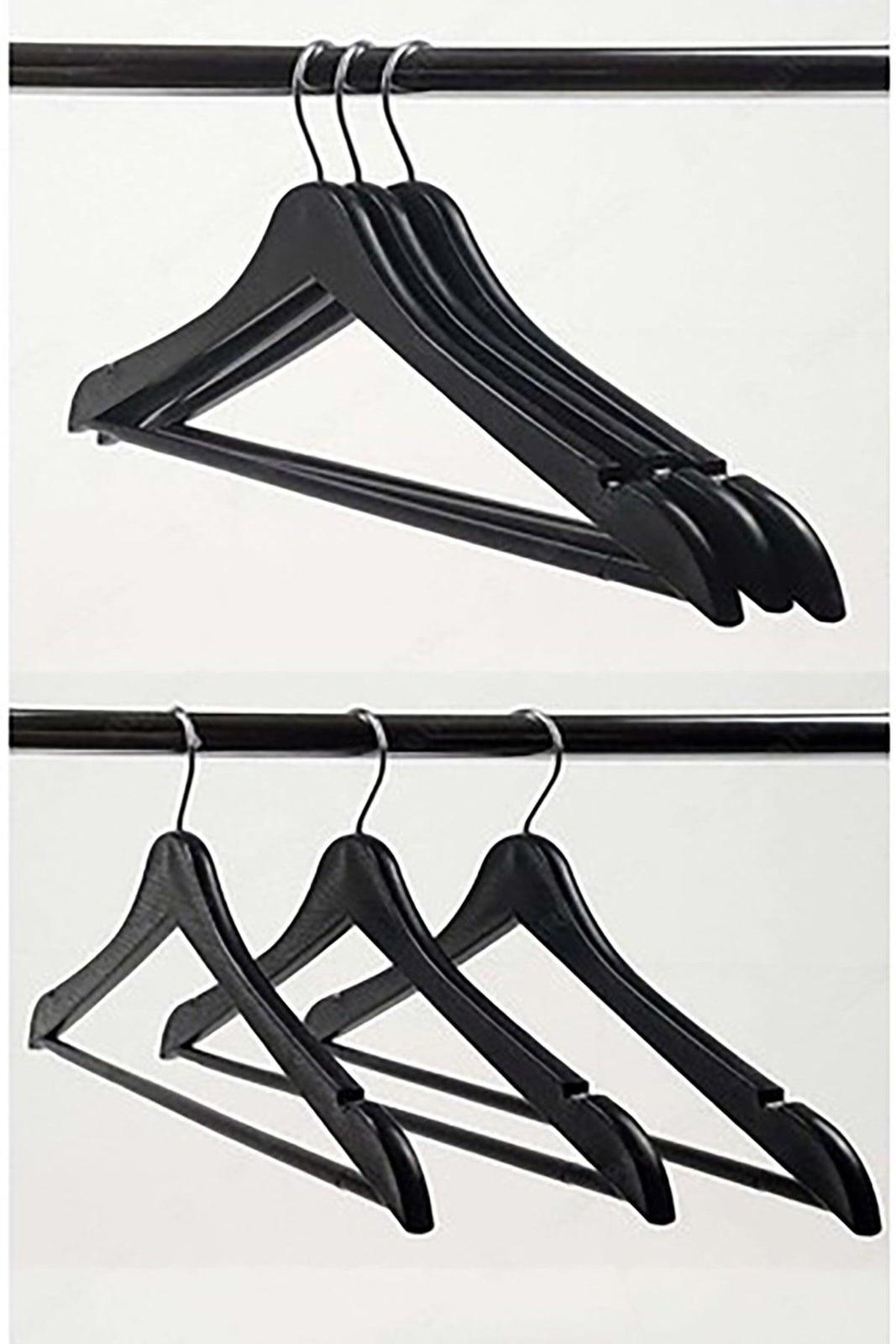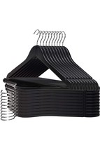 24 Pieces Rack Black Clothes - Clothes Hanger Shirt Hanger Trouser Hanger 1st Class Quality Dimensions Width 43 cm Height 20.5 cm Thickness: 1.10 cm UPGRADED SHOULDER DESIGN: The groundbreaking curved shoulder design of our clothes hangers helps keep your coat or suit in shape while hanging neatly in your bedroom closet. ORGANIZE YOUR CABINET with this premium clothes hanger set with 360 degree swivel hooks that will keep your shirts, dresses, jackets, suits, pants, blouses and coats wrinkle free. ADD STYLE WITH OUR UNIQUE ROUND END HOOK: Elegant round end hooks make our hangers uniquely elegant USE THESE STRONG HANGERS ALL YEAR: Hang heavy coats and jackets stress-free on your thick, high-quality coat hangers! More than 100 stock available for sale at promotional price.