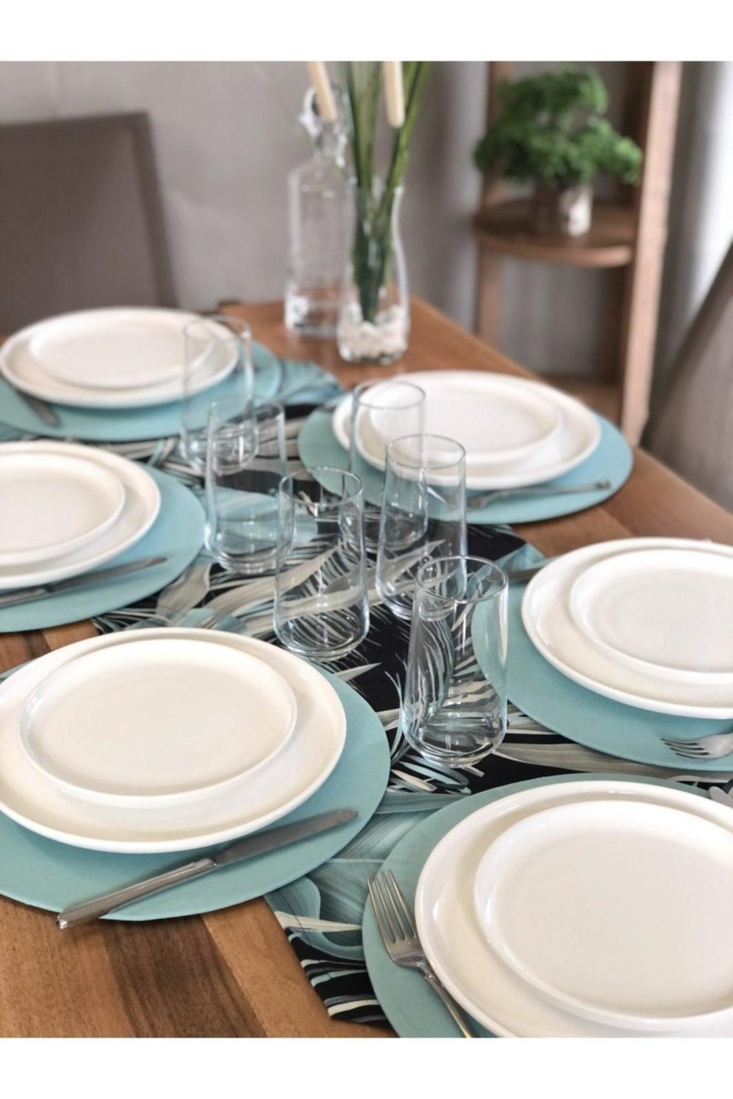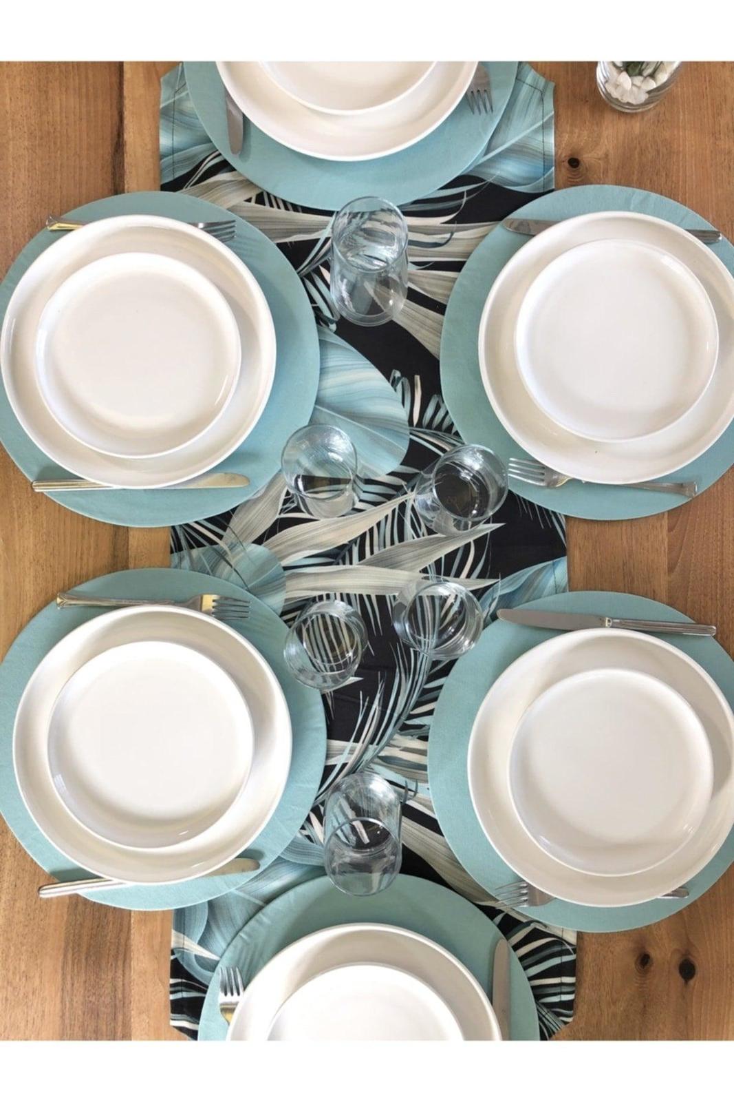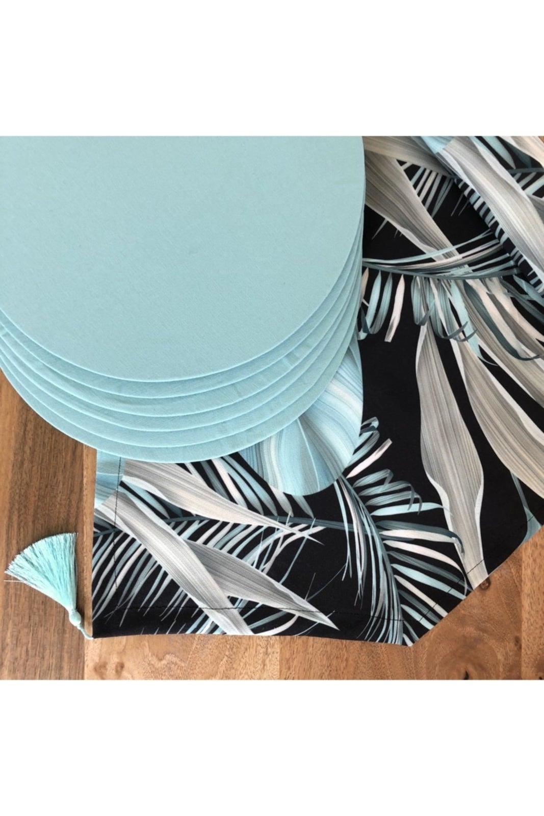 All of our products in our sets are handcrafted from high quality fabric that does not shrink, does not remove paint and is water repellent. Our suplas are made of 33 cm diameter, 3 mm thick mdf / wood material and duck linen fabric, our Runners are 140 cm x 40 cm digital printed fabric. It is meticulously prepared with handwork so that it can be washed. The product includes 6 valve covers, 6 mdf and 1 runner. There are 13 pieces in total. Washing at 30 degrees and ironing on the reverse is recommended. More than 100 stocks are offered to be sold at the campaign price.