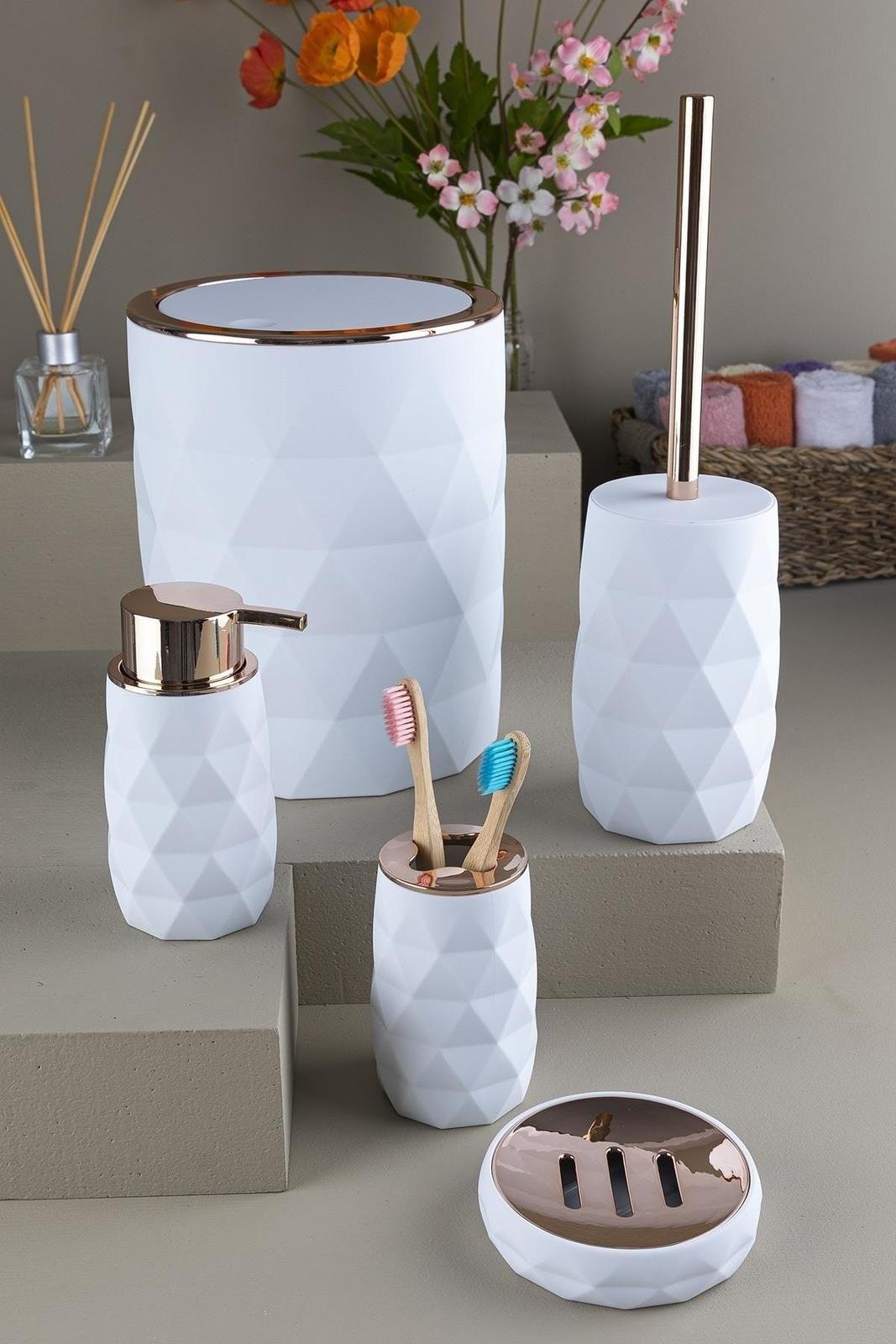 Lux Acrylic Diamond Pattern 5 piece bathroom set 1 dustbin. 1 soap dispenser. 1 solid soap dish. 1 toothbrush holder with toothpaste. 1 toilet brush. The 5 acrylic bathroom set, which will bring together sport and elegance in your bathrooms, is resistant to hard impacts. You can use the bathroom set that will adapt to every corner of your bathroom, unbreakable and long-lasting, healthy and with peace of mind. **DIMENSIONS: -Liquid Soap Dispenser-O 7 x 15 Cm. -Soap Dispenser: O 11 x 3 Cm. -Toothbrush Holder: O 7 x 12 Cm. -Trash Can: O 19 x 24.5 Cm. -Wc Brush: O 8,5 x 35 Cm. More than 10 stocks are offered to be sold at the campaign price.