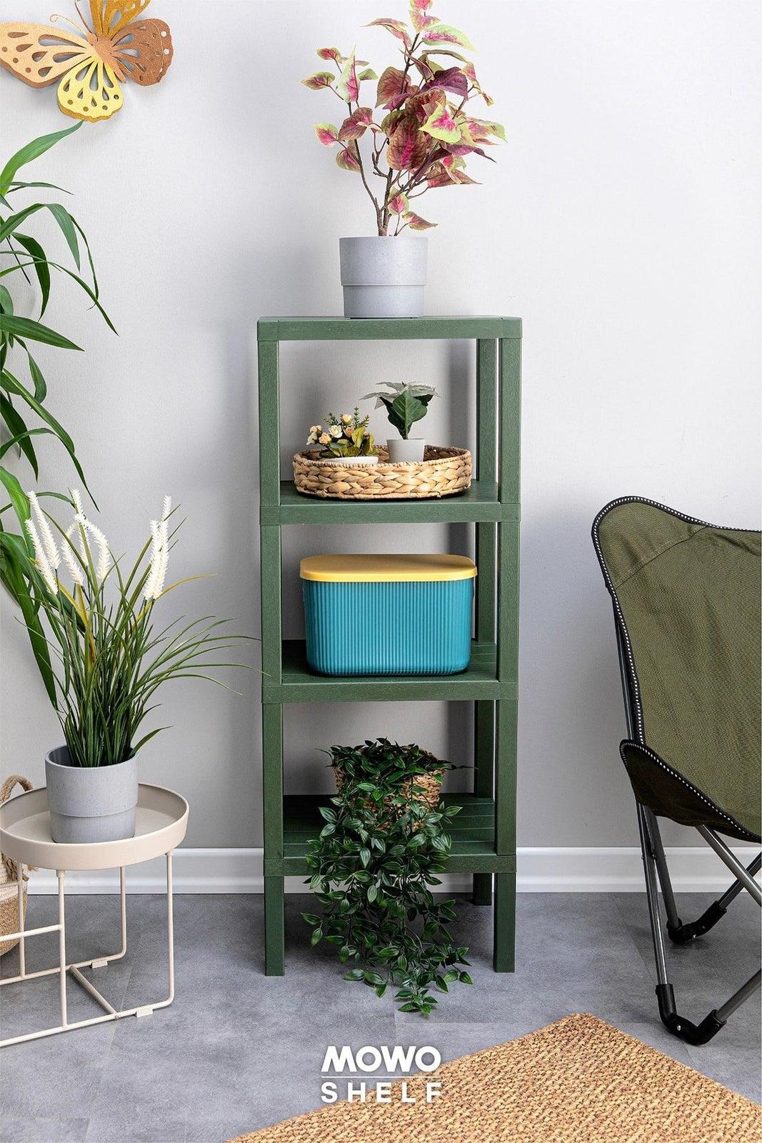 Shelf 4-Tier Organizer Plastic Shelving Unit Green, Bookshelf, Bathroom, Kitchen