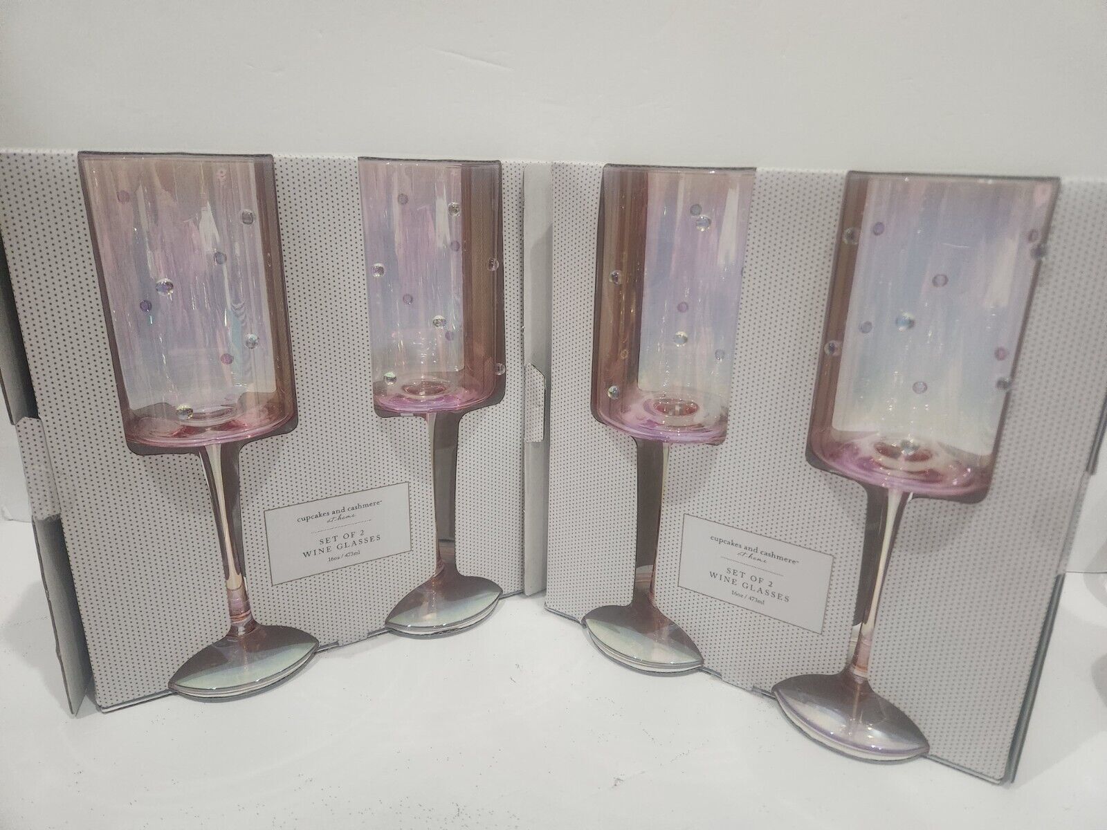 Cupcakes and Cashmere Pink Iridescent Wine Glasses Set of 4 NEW NIP 16oz