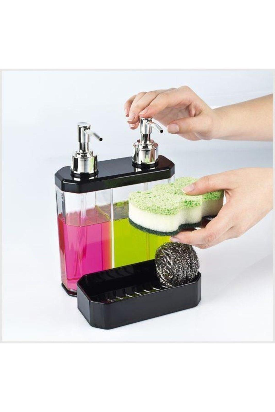 Twin 2 1 Detergent Dish Schwamm Flüssigkeit Seife Küche Organizer Organizer Orga