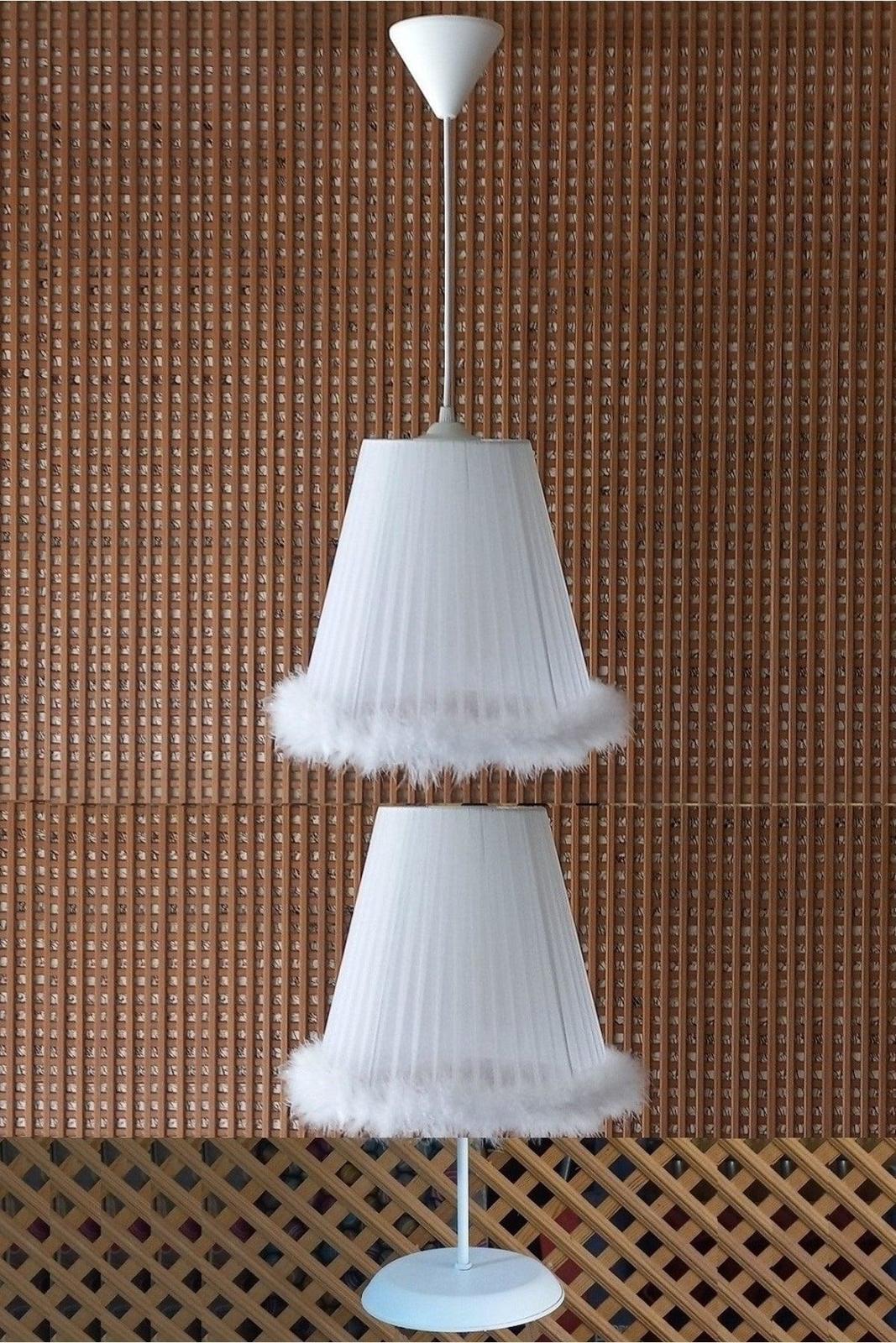PRODUCT INTRODUCTION -ORGANZE (RIBBON) SARMA BEDROOM AND CHILDREN'S ROOM CHANDELIER LAMP SET -WITH CHANDELIER HANGING -METAL LEG IS WHITE STATIC PAINTED. -THE LAMPSHADE IS WITH ON-OFF SWITCH ON THE CABLE -E27 (STANDARD) BASE IS USED -SUITABLE FOR ECONOMIC OR LED BULB USE. CHANDELIER DIMENSIONS -UPPER DIAMETER 15 CM -LOWER DIAMETER 25 CM -HEIGHT 24 CM -HIGH ADJUSTABLE HANGER WITH HANGER DIMENSIONS - TOP DIAMETER 13 CM - BOTTOM DIAMETER 23 CM - HEAD HEIGHT 20 CM - To be sold at the price of 40 CM WITH FOOT. More than 100 stocks are available. Listed price is valid until 17 October 2023.