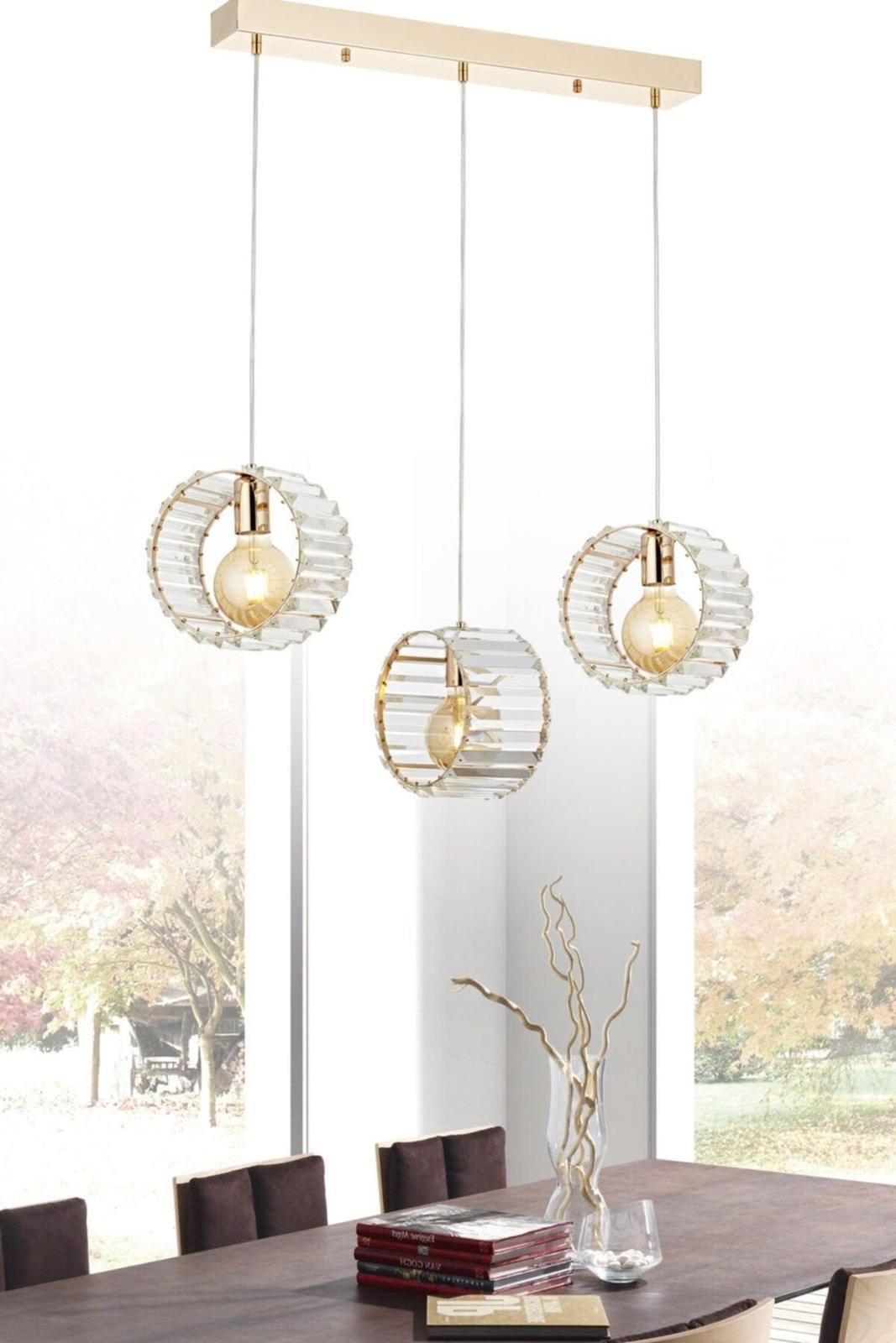 Hermes 20 Cm Crystal Stone Ornamented Yellow 3-Set Ballroom Chandelier
