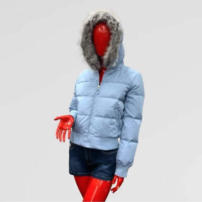 Women?s Sky Blue | Grey Faux Fur Jacket JLO by Jennifer Lopez NWT