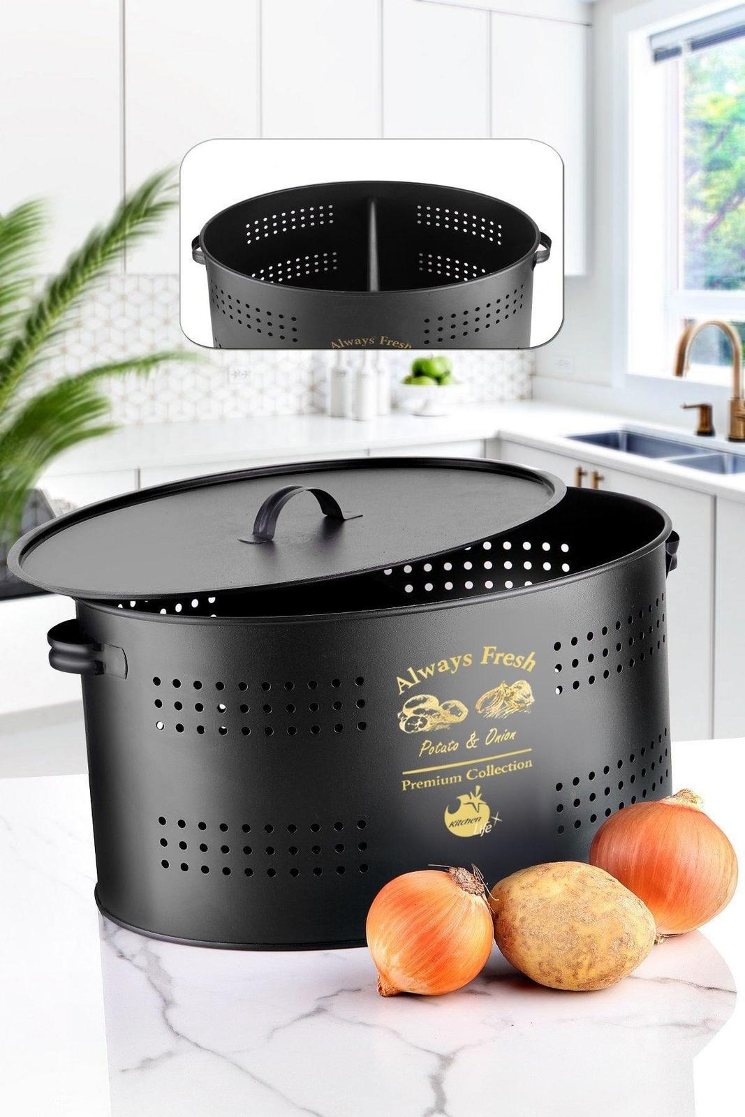 Large Sized Lux Metal Potato-Onion Bucket Basket with Compartments