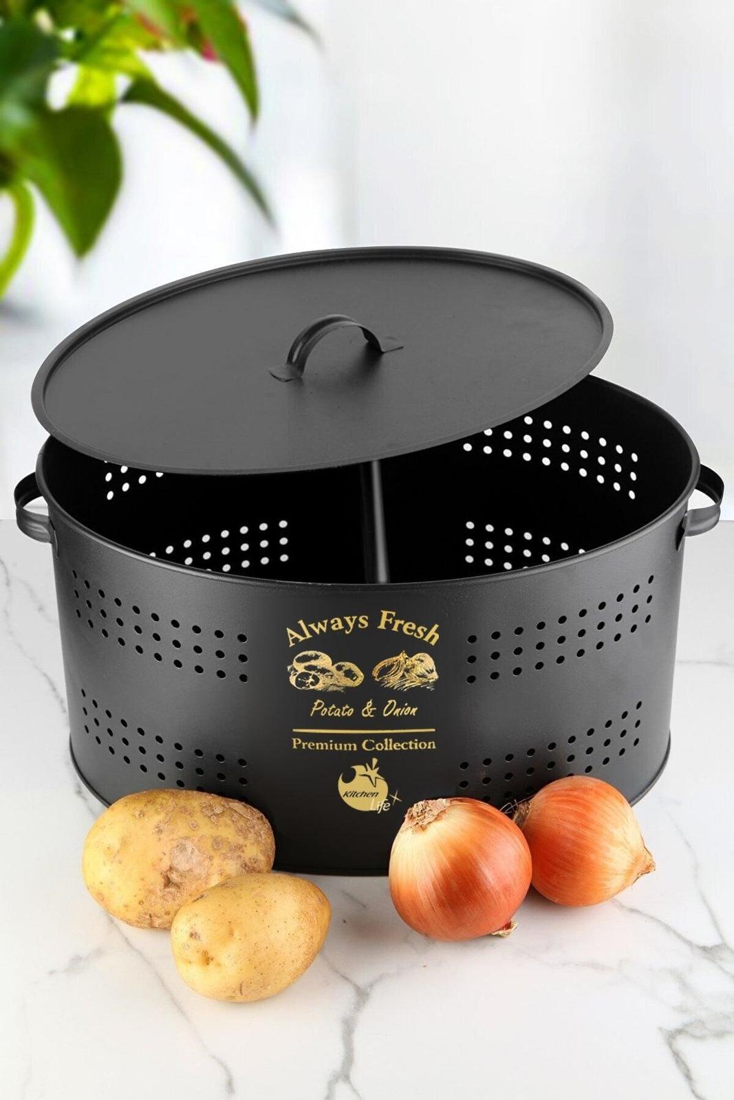 Made of stainless metal. Thanks to the compartment inside the bucket, you will be able to store your potatoes and onions separately. In this way, potatoes and onions do not mix with each other. It is a gold-plated print. 3.5 - 4 KGS of vegetables can fit in the product. Product Dimensions: Width: 28 cm Length: 37 cm Height: 20 cm Return Conditions: Your products are wrapped in a patta, boxed and packaged as they reach you. It must be returned intact. Otherwise, the returned returns will not be accepted. More than 100 stocks are offered to be sold at the campaign price. The listed price is valid until 17 October 2023.
