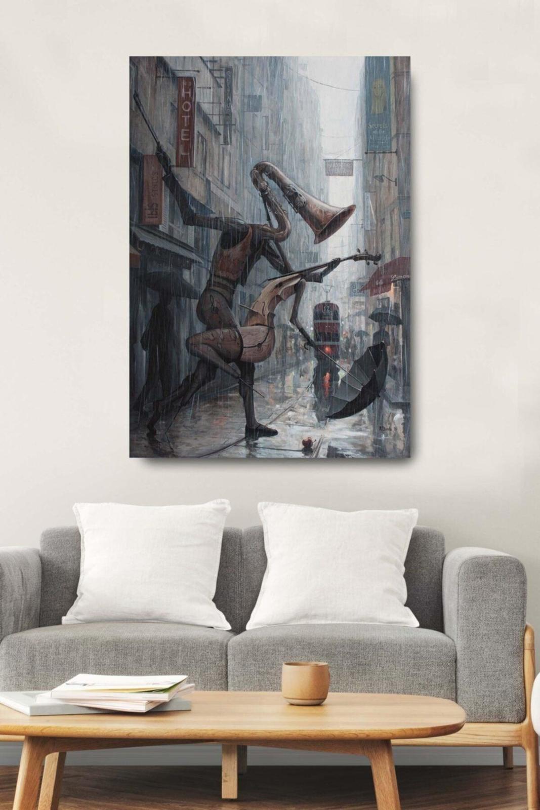 Rain Music And The Rhythm Of The City Abstract Decorative Canvas Wall Painting H