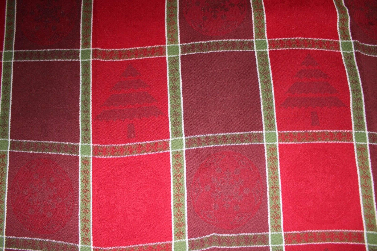 Vintage BH&G Red Green Tablecloth Christmas Trees & Ornaments Cotton 96" X 54"
