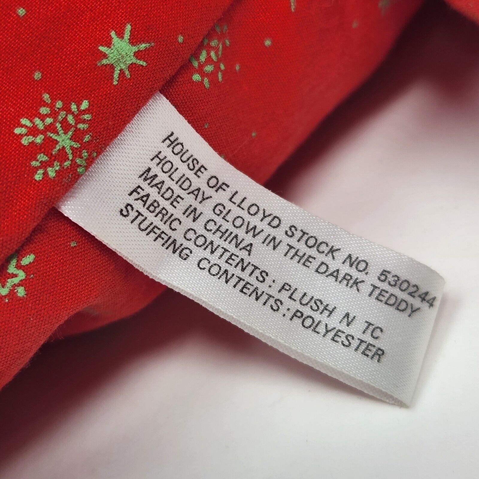 12" VINTAGE HOUSE OF LLOYD CHRISTMAS GLOW IN DARK BEAR STUFFED ANIMAL PLUSH