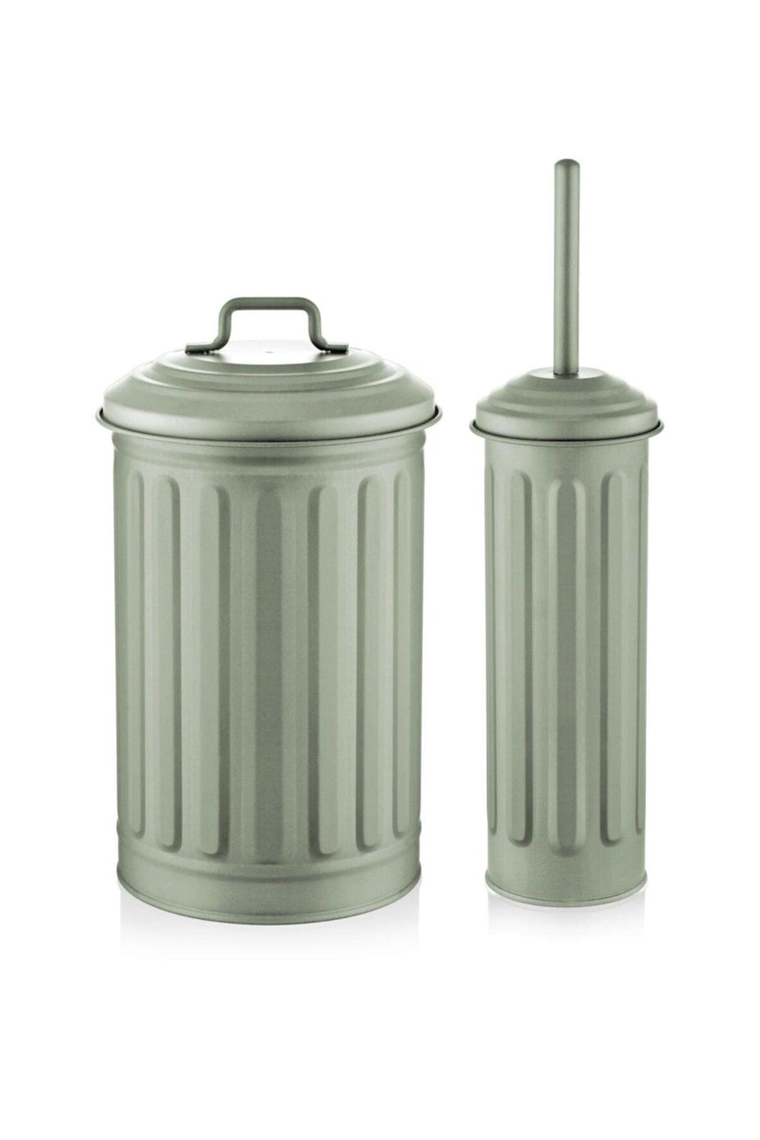 The Mia Trash Can Toilet Brush Set -Green Product Features Material/Material: MetalDimension: 33.5x17.5x27 cmNumber of Pieces: 2 Pieces It gives your bathroom a retro and stylish look with its green color. Thanks to its galvanized coating, it does not rust and does not stain. Can be used outdoors. It can be cleaned with a damp cloth. Product Contents ? Dustbin ? Toilet brush