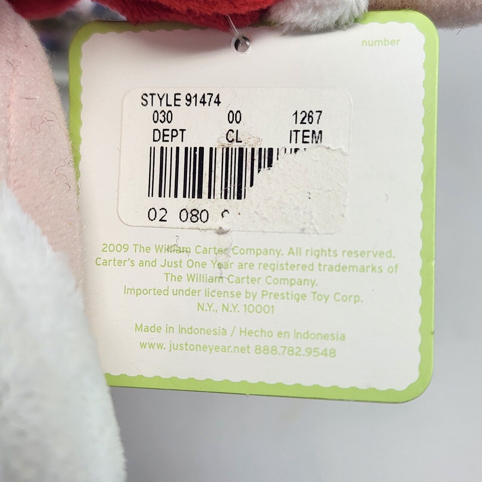 12" CARTER'S MY FIRST CHRISTMAS JUST ONE YEAR STUFFED PLUSH 2009 NEW TAG # 91474