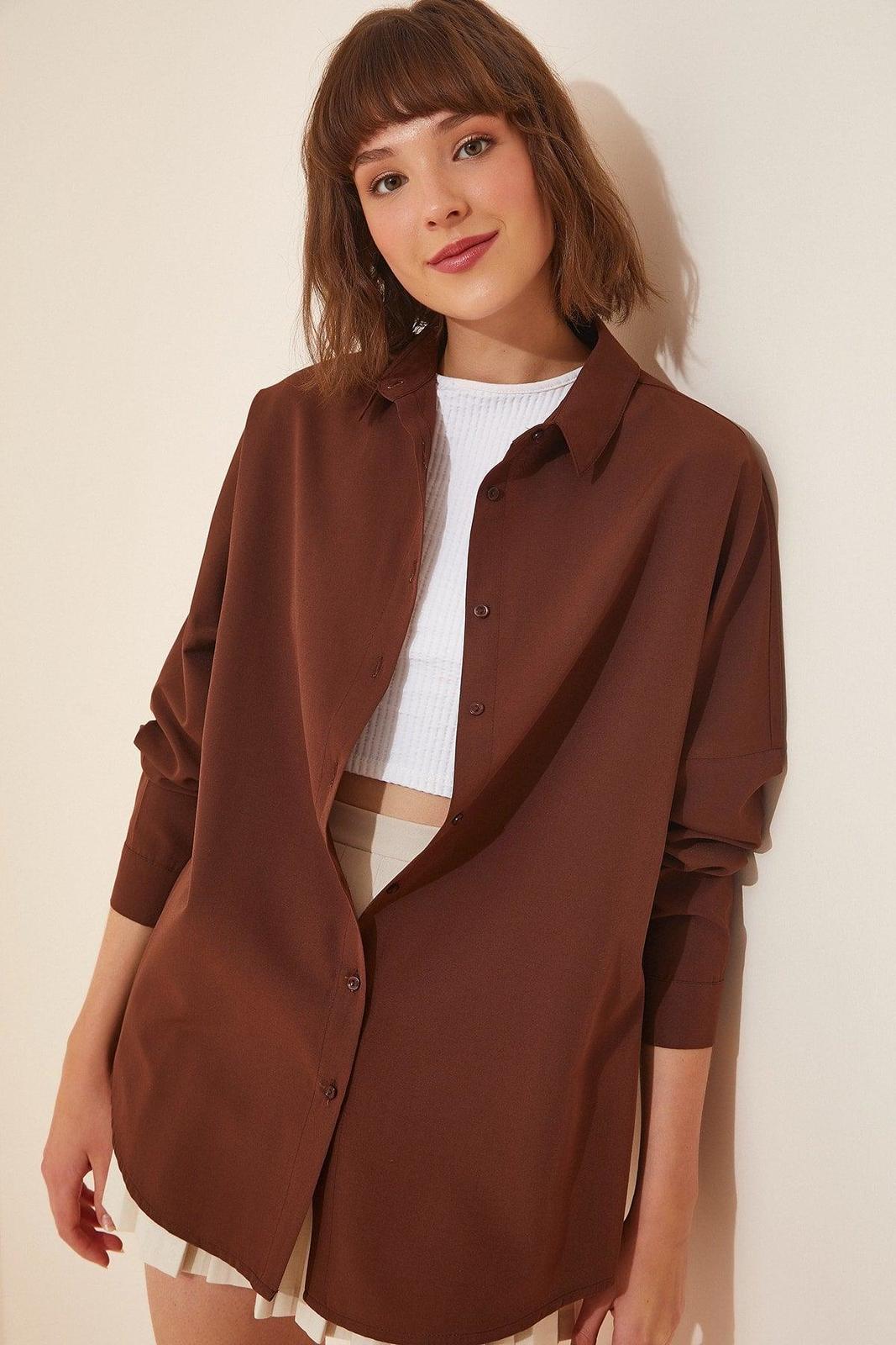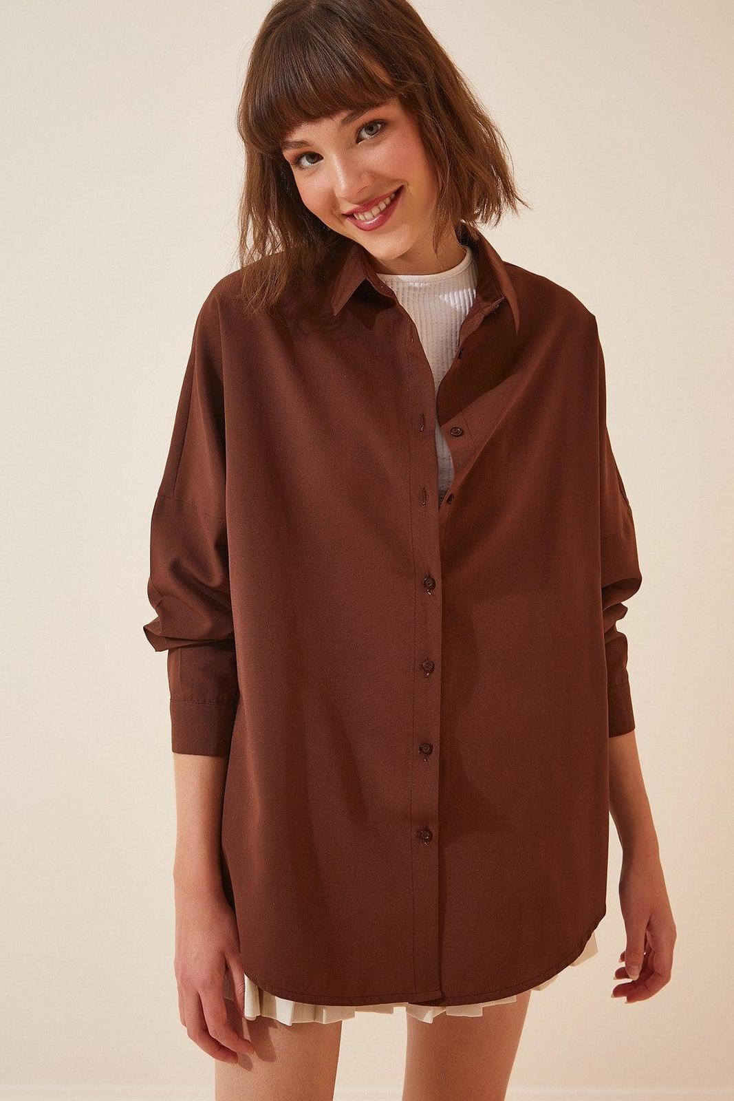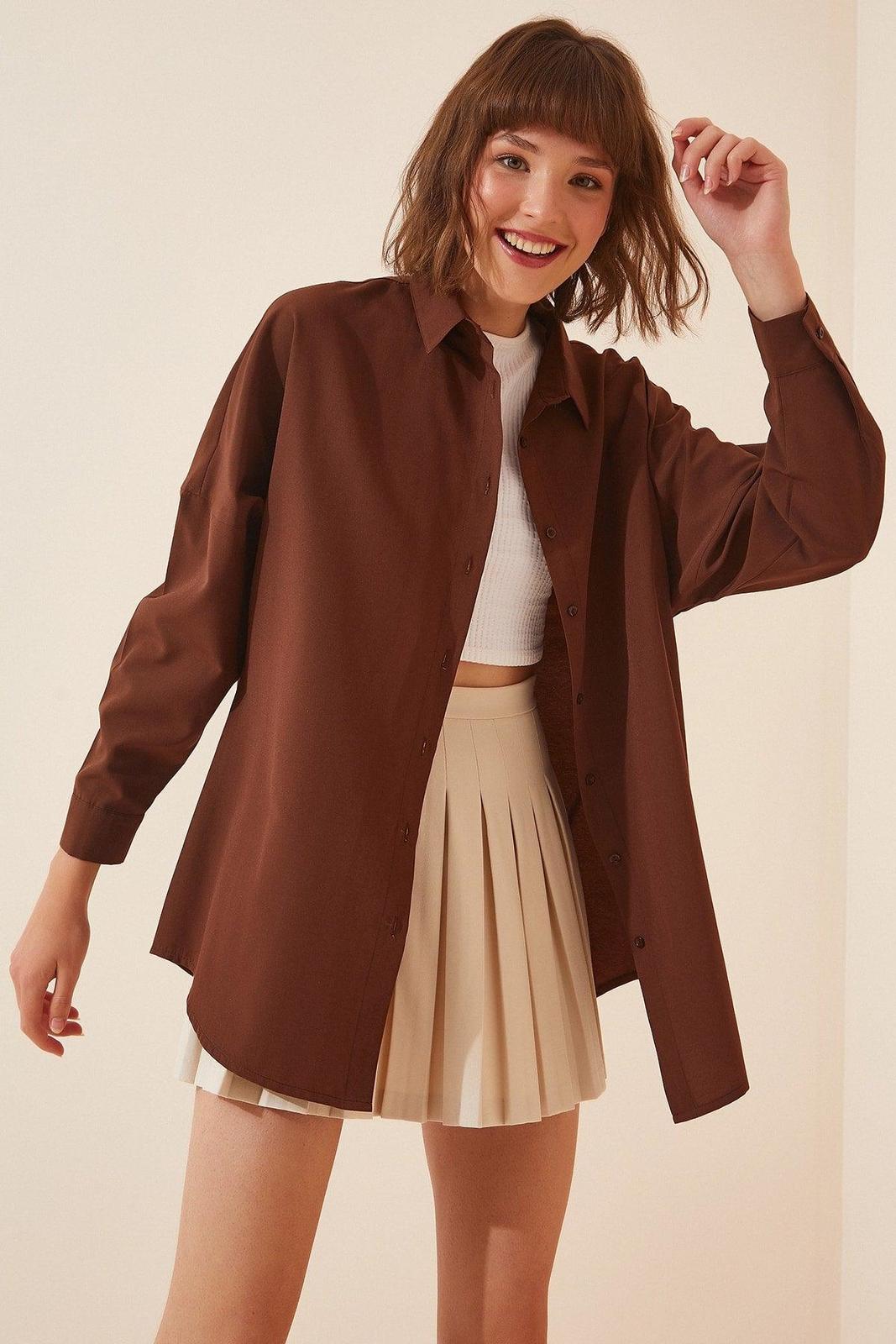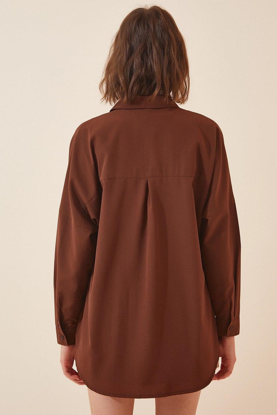 Women's Chocolate Oversize Long Basic Shirt DD00842