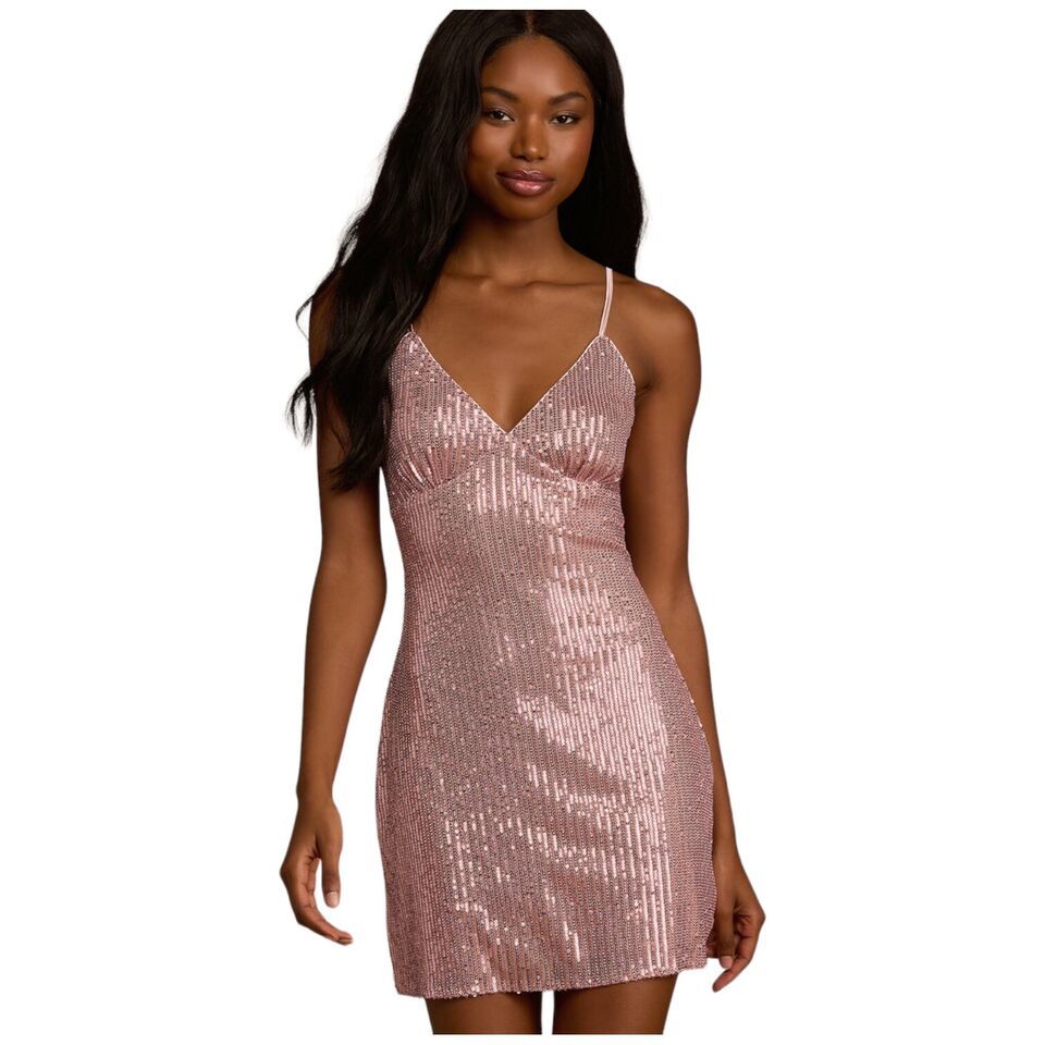 Lulus Party in Style Sequin Sleeveless Mini Lined V Neck Dress Light Pink XL