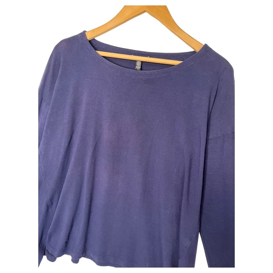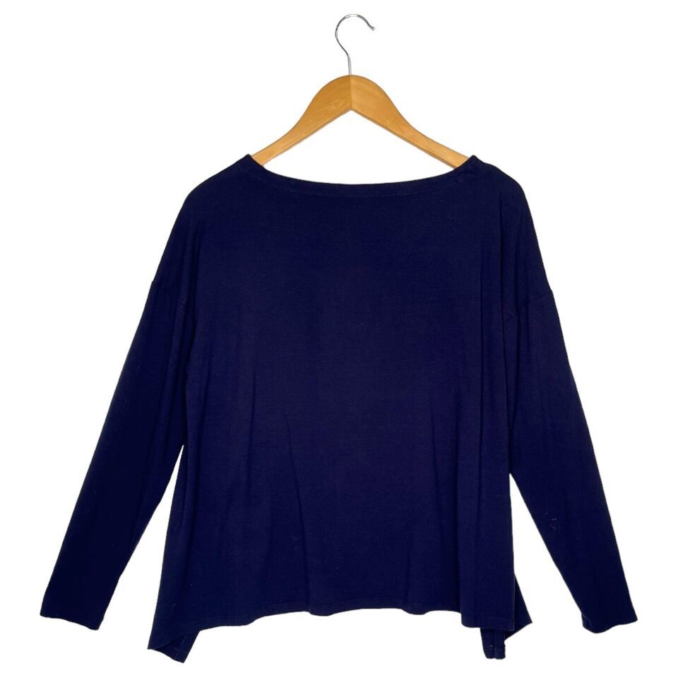 Eileen Fisher Top Women's Long Sleeve Split Sides Round Neck Floaty Fit Blue