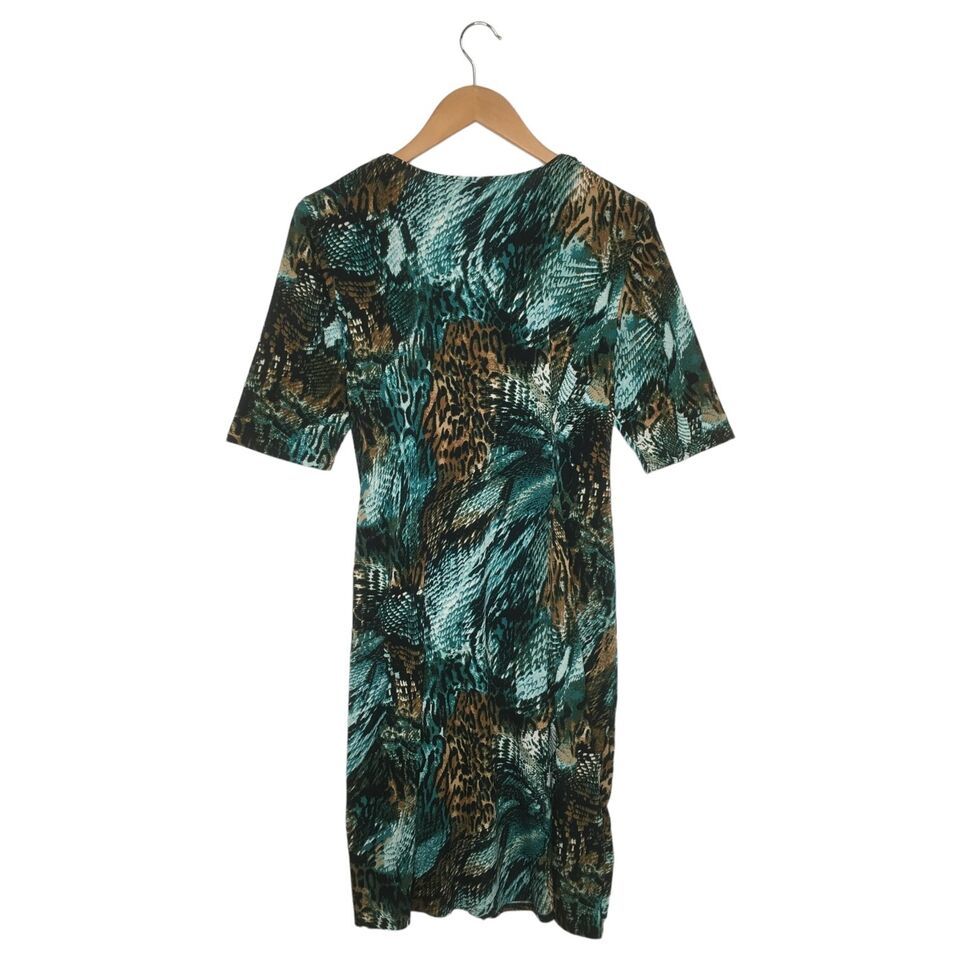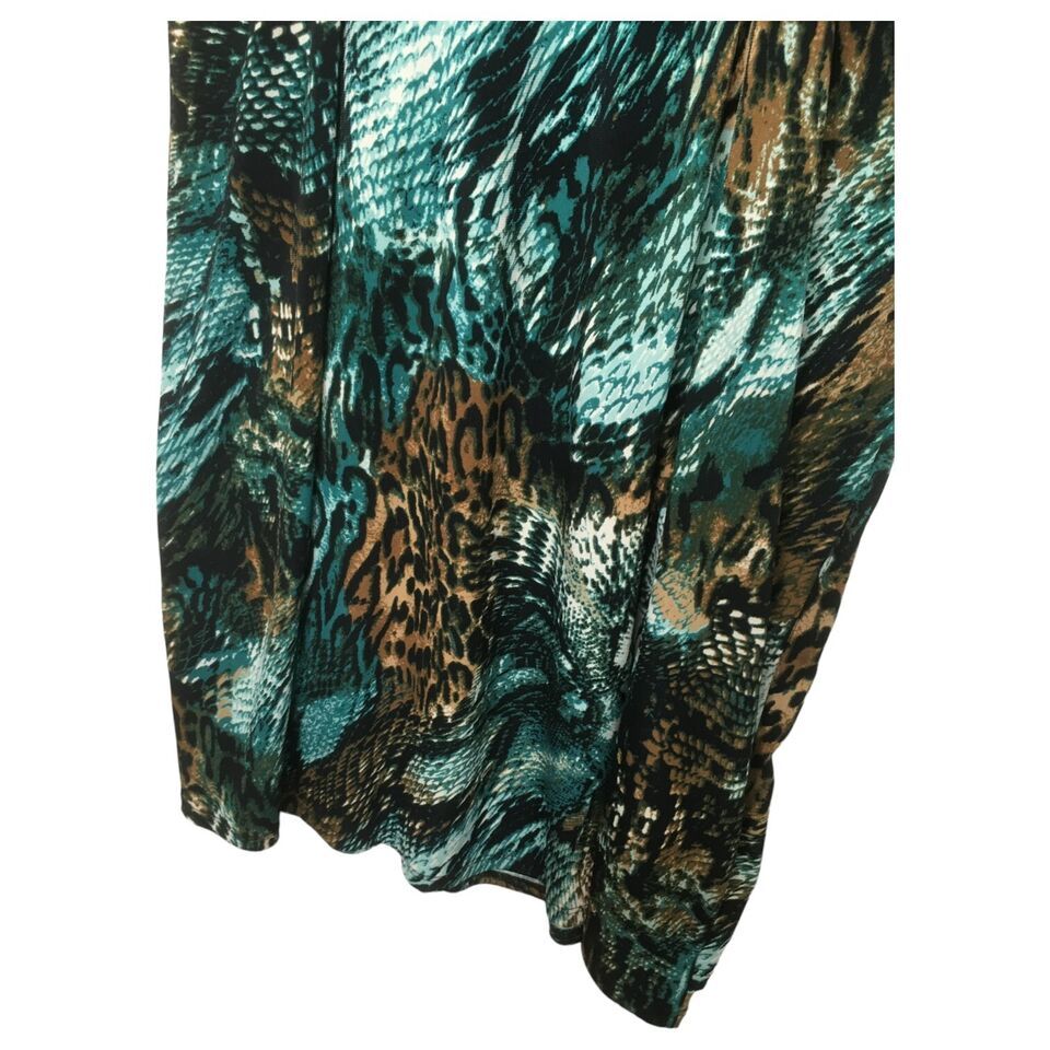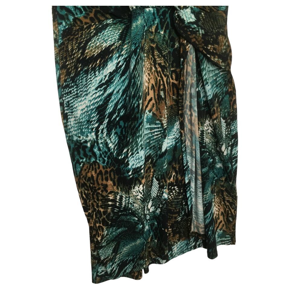 MSK Dress Womens Large Animal Print Faux Wrap V Neck Stuffed Short Sleeve Green