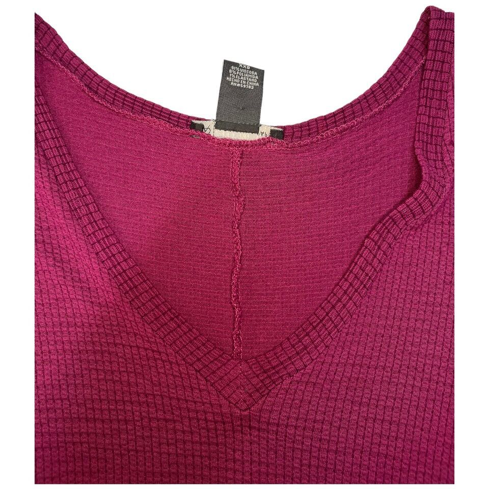 Adrianna Papell Textured Long Sleeve Tunic Soft V Neck Burgundy Glow XXL
