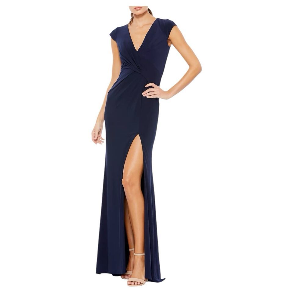 IEENA For MacDuggal Dress Women's Formal Maxi V Neck Mother Of The Bride Blue