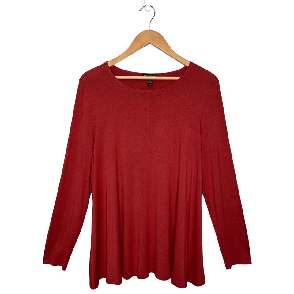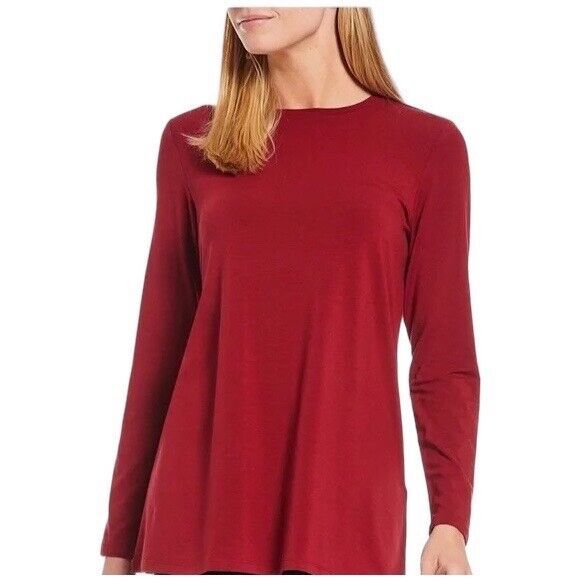 Eileen Fisher Long Sleeve Round Neck A Line Relaxed Soft Tunic Rusty Mauve L