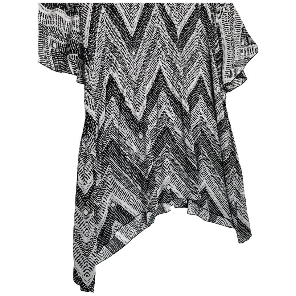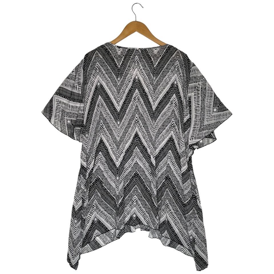Catherines Womens Size 3X Blouse V Neck Beaded Chevron Shark Bite Hem Black