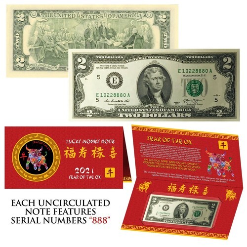 In celebration of the 2020 Year of the Rat Chinese Lunar New Year, we have announced the newest addition to its Lucky Money Collection?2020 Year of the Rat Lucky 8?s Serial Number Banknotes. The Year of the Rat 2020 product is designed with Decorative Chinese Symbolism and packaged in a Symbolic Red Folder adorned in Full-Color. Each folder contains an uncirculated Genuine Legal Tender United States Banknote.