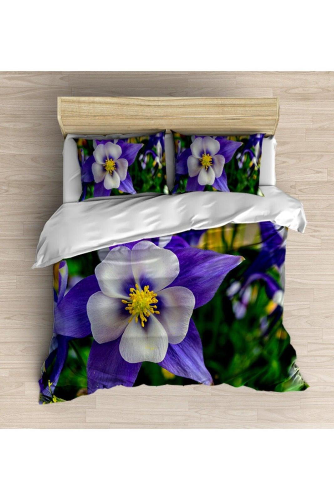 Osso Purple White Violet Floral 3d Patterned Double Duvet Cover Set